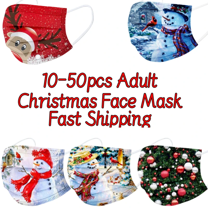 Маска для Хэллоуина, 10 шт., одноразовая маска для лица для взрослых с рождественским принтом