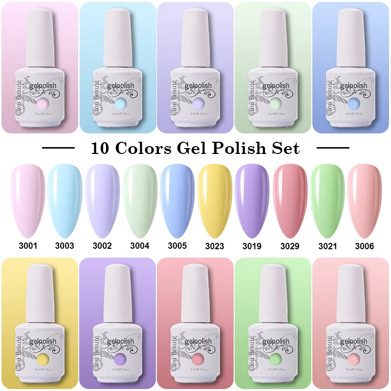Clou Beaute 10 шт. набор гель-лаков для ногтей набор гель-гель полуперманентный дизайн ногтей Гибридный лак гель впитывающий УФ светодиодный лак Manucure