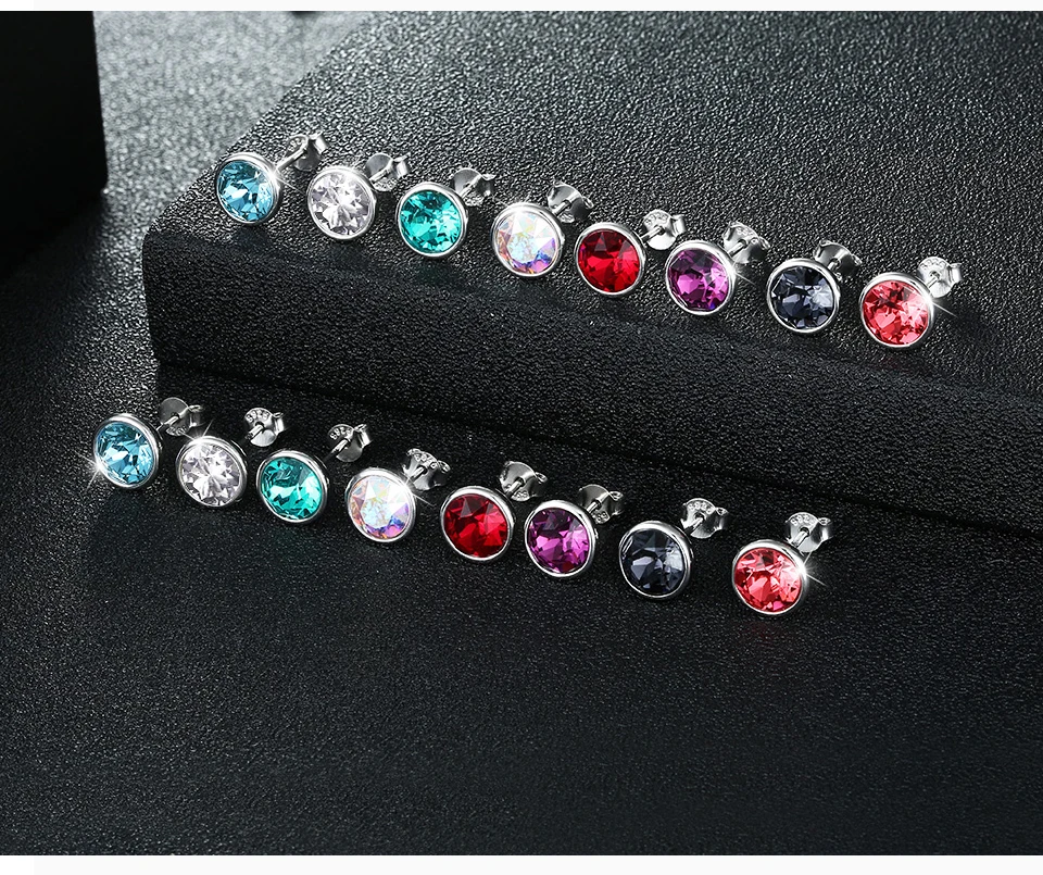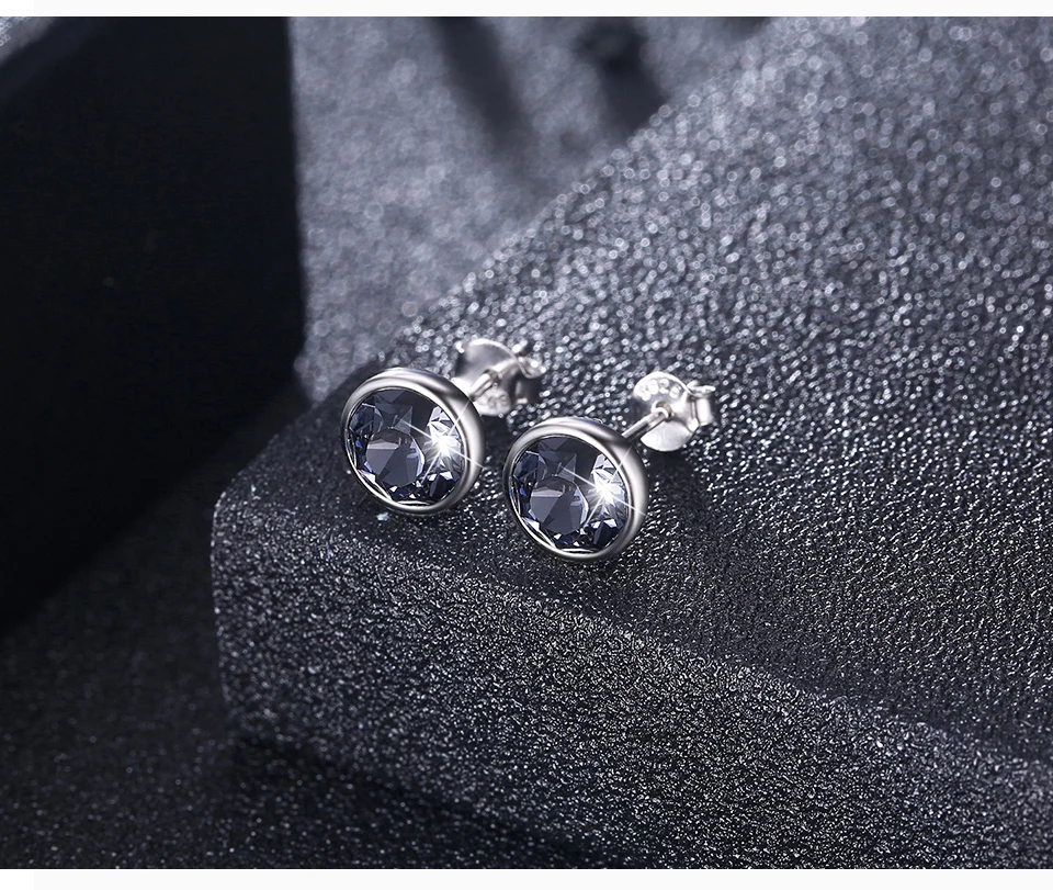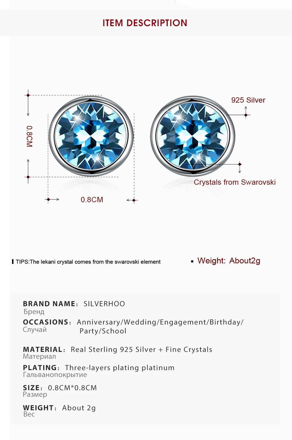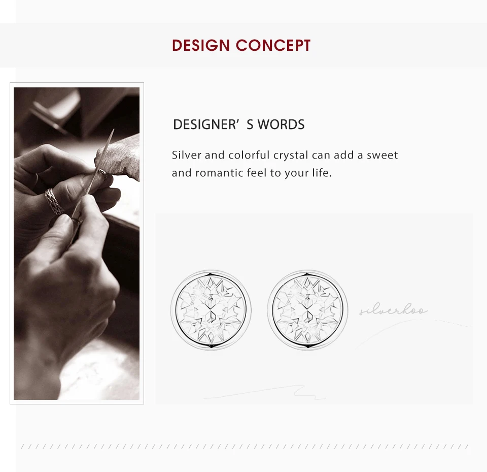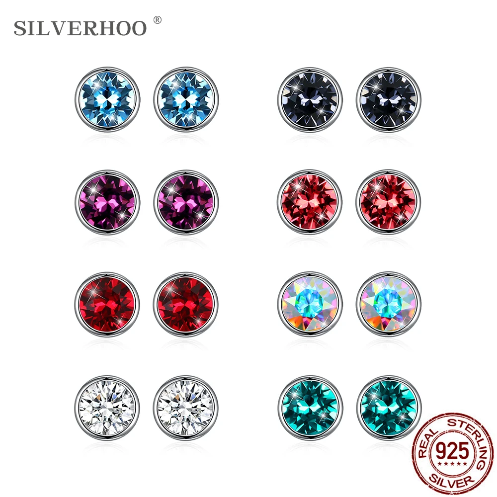 Женские серьги с австрийскими кристаллами SILVERHOO, Классические Вечерние круглые серьги из стерлингового серебра 925 пробы