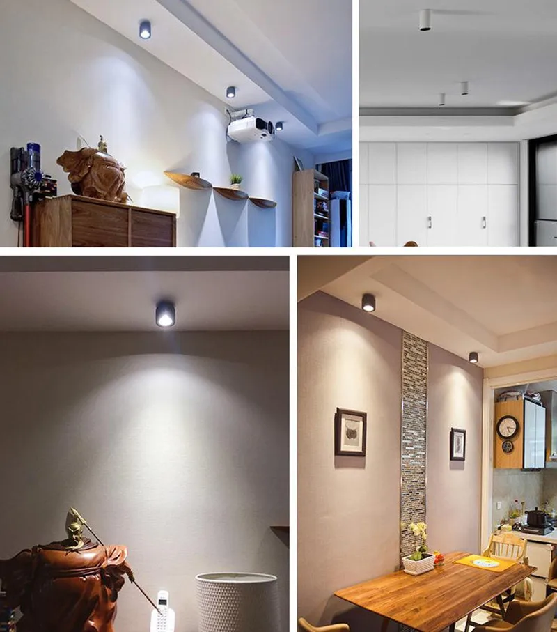 Круглый Точечный светильник, плафон, поверхность COB, потолочный светодиодный светильник с регулируемой яркостью, AC90-260V, белыйчерный, для спальни, фойе, кухни, комнаты