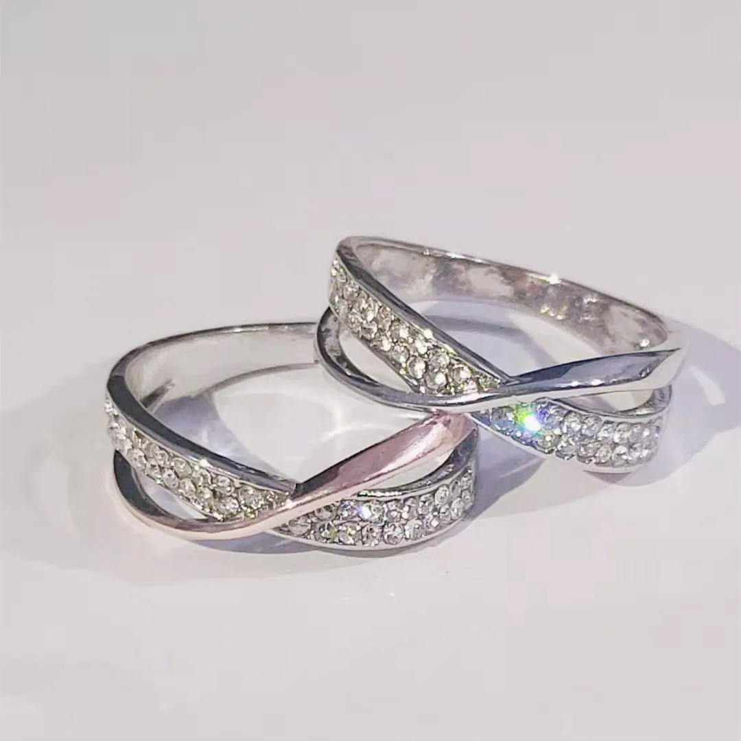 Новинка 2021 классические обручальные кольца для женщин, модные двухцветные крестообразные ослепительные CZ кольца, Женские Ювелирные изделия для помолвки