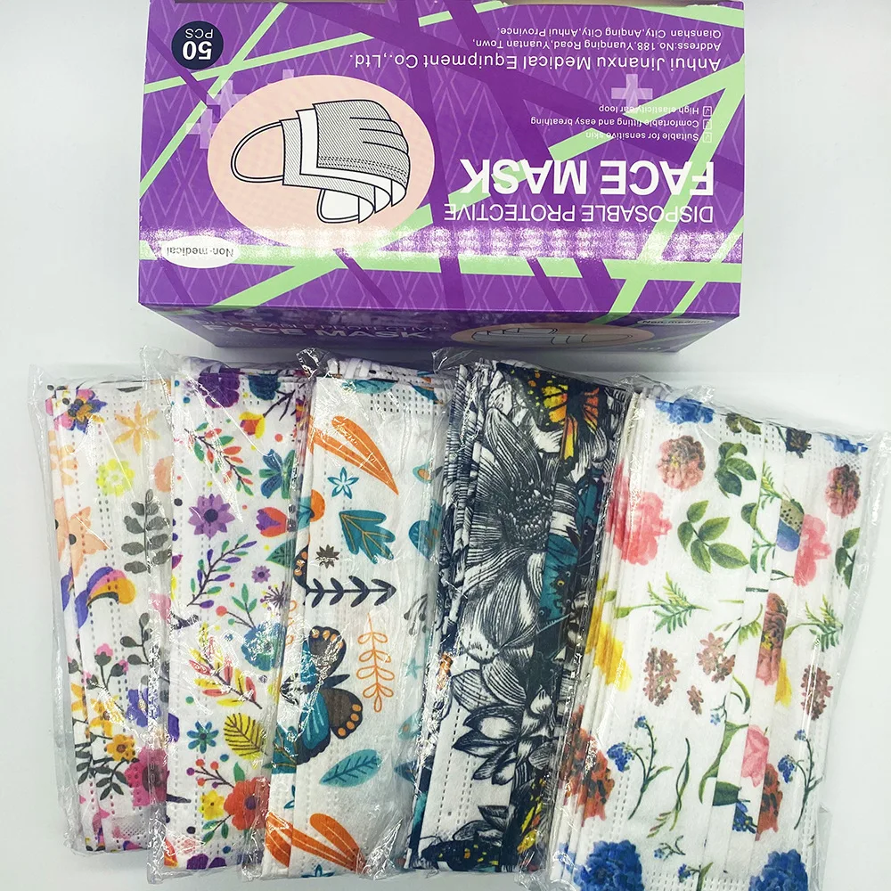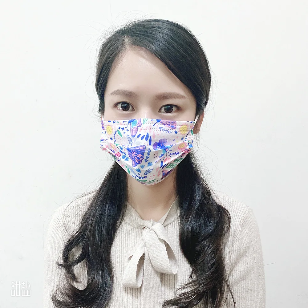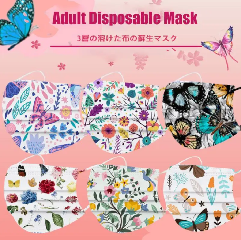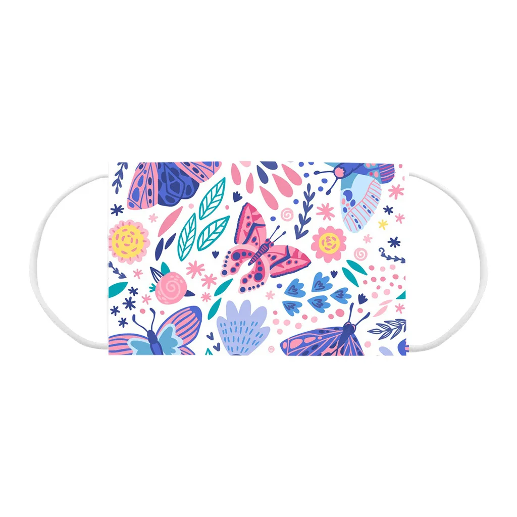 Маска для лица одноразовая трехслойная с бабочкойцветочным принтом, 50-300 шт.