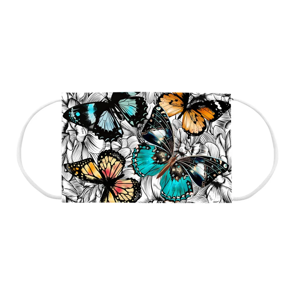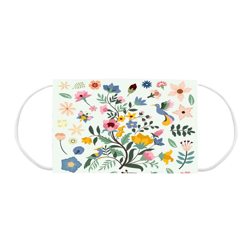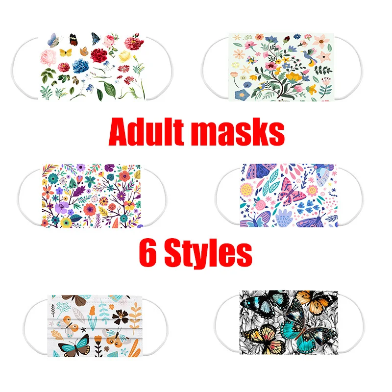 Маска для лица одноразовая трехслойная с бабочкойцветочным принтом, 50-300 шт.