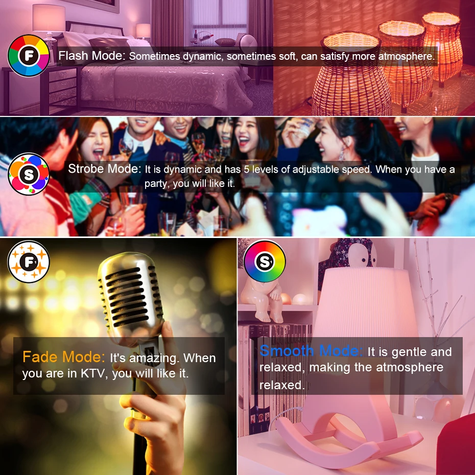 Мощность: 5 Вт 10 Вт 15 ВтТип интерфейса: E27Напряжение: AC85-265VСветодиодный срок службы: > 50000 часовСветовой поток: 5 Вт 350лм/10 Вт 550лм/15 Вт 800лмСветильник: красный, зеленый, синий, фиолетовый, белый, оранжевый и так далее (всего 16 видов цветов)Рабочая температура: от-20 до 40 градусовМатериал: алюминиевый сплавФункция: Включите/выключите лампу с помощью пульта дистанционного управления, затем доступна функция памяти лампы.
