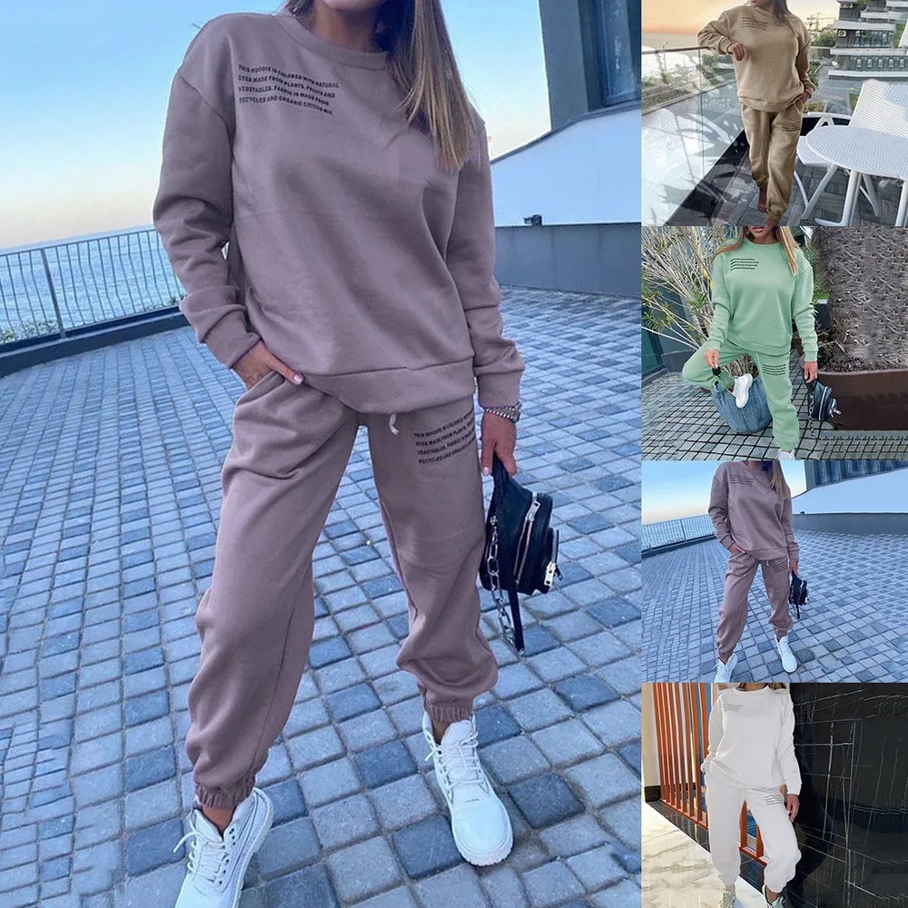 Женский спортивный костюм для фитнеса, спортивные костюмы с надписью, женский спортивный костюм, толстовка большого размера с длинным рукавом и штаны для бега, 2021