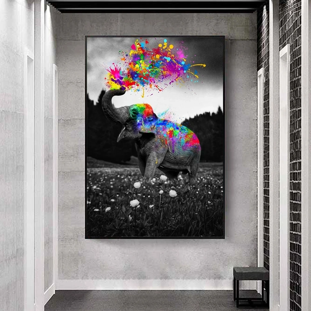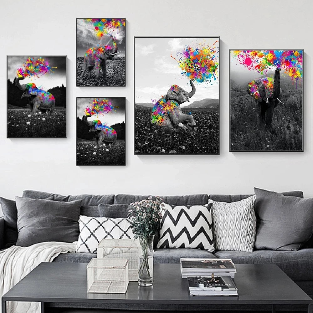 Современные цветные граффити с животными, фотокартина на холсте, плакаты и принты, настенное искусство для гостиной, домашний декор