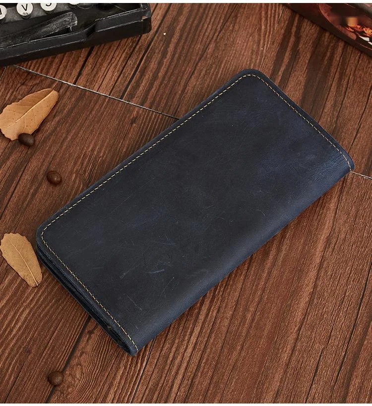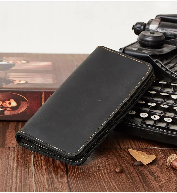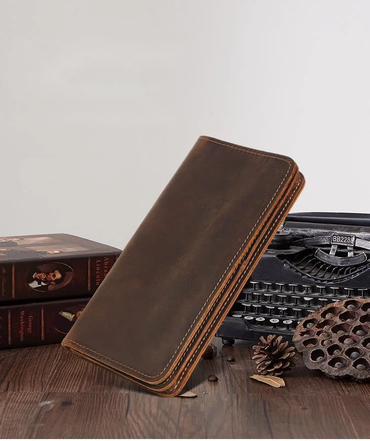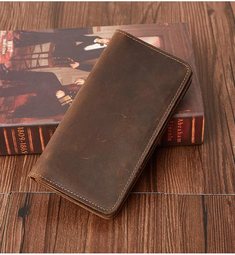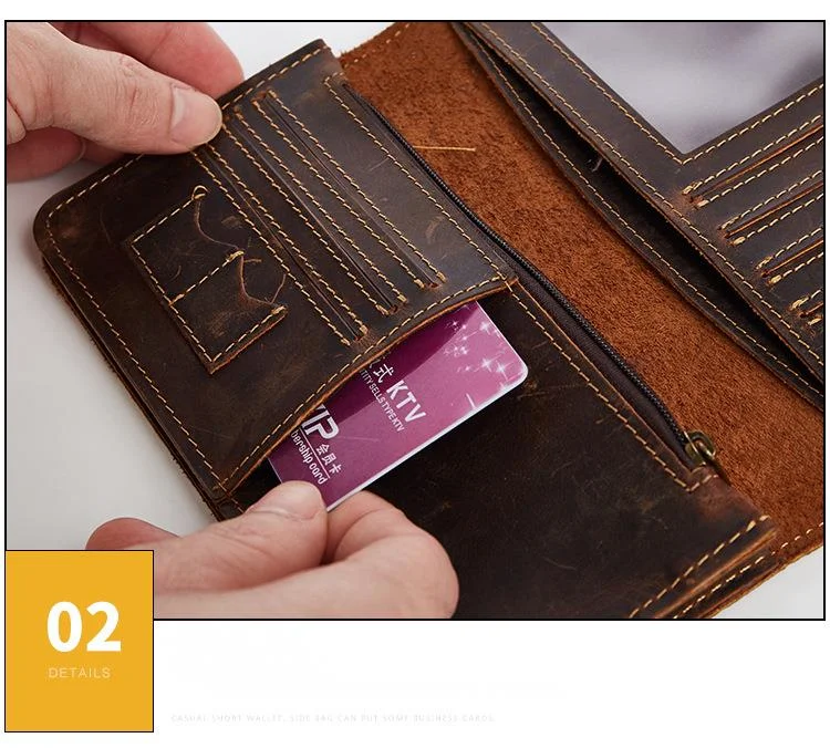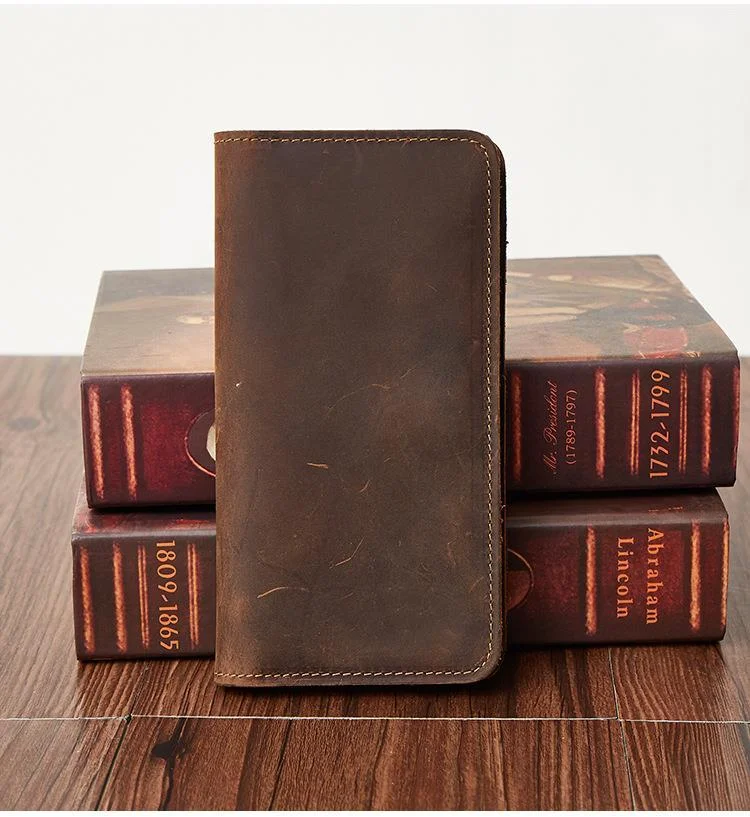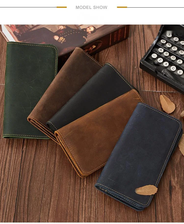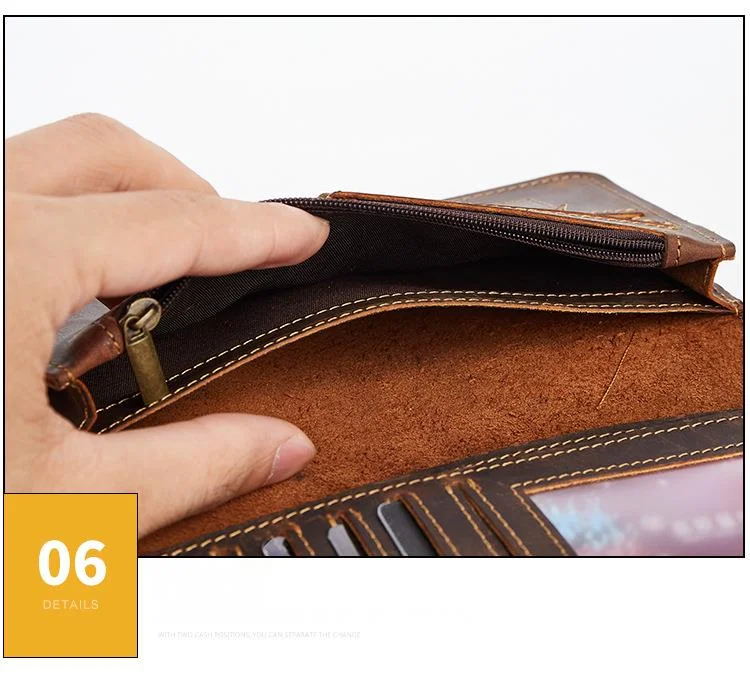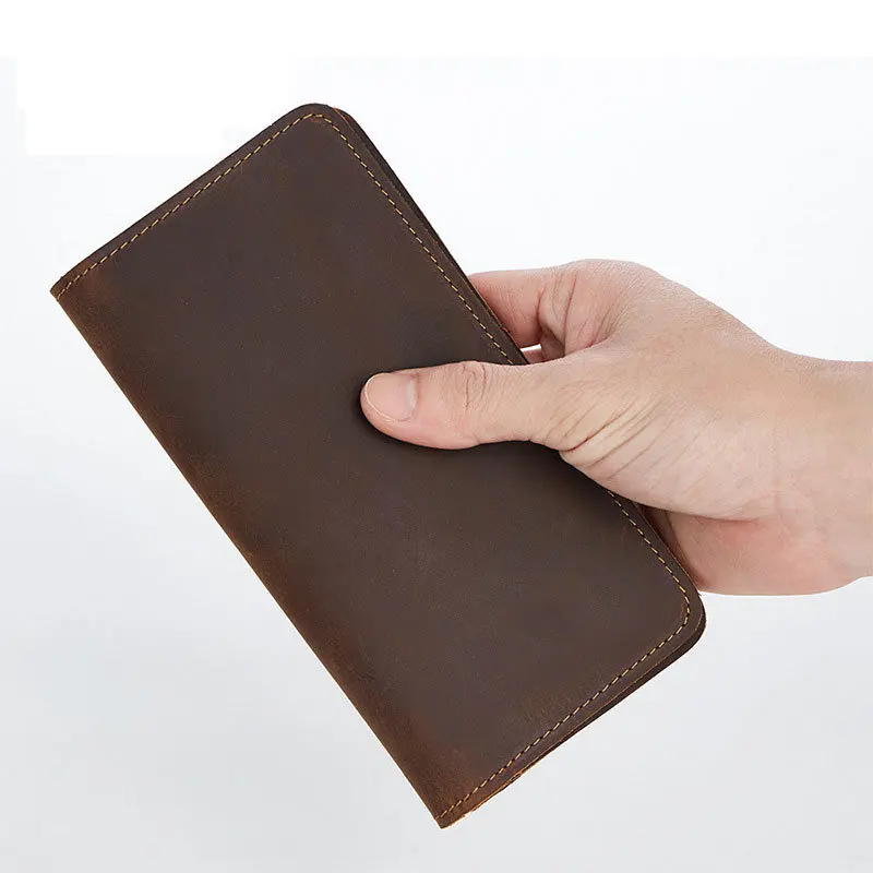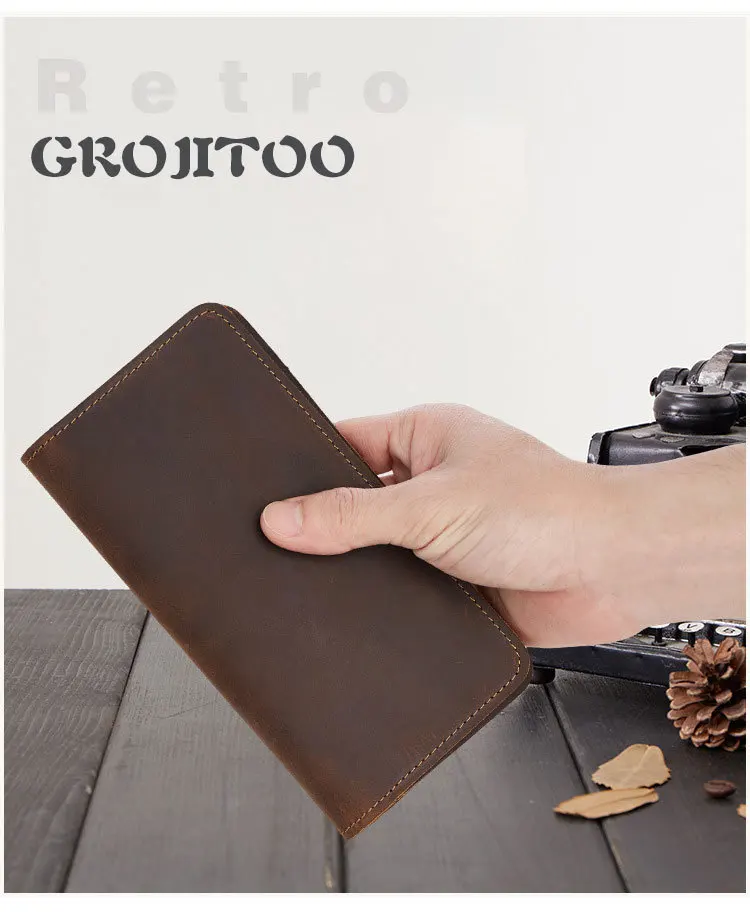 Мужской кожаный кошелек GROJITOO из кожи Крейзи Хорс, деловая сумка с несколькими отделениями для карт, модный длинный кошелек, вместительный мужской кошелек