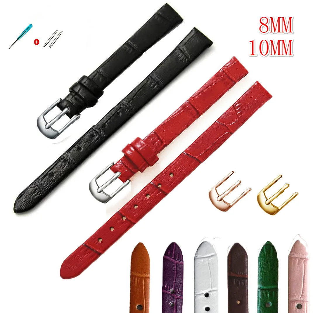 Качественный ремешок для часов, аксессуары для часов, Женские винтажные ремешки для часов, ремешок для часов из натуральной кожи, ремешок для часов 8 мм 10 мм, пряжка с язычком из розового золота