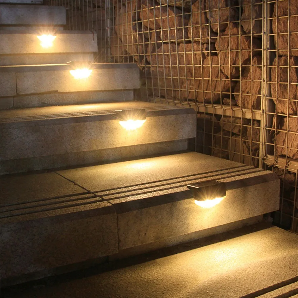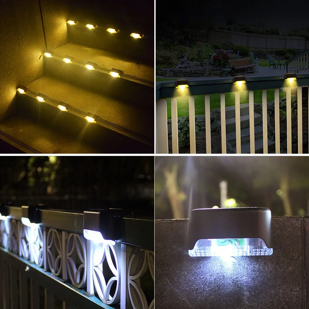 3. Каждый Солнечный шаговый светильник имеет 10 люмен и излучает теплое белое светодиодное освещение светильник, освещая ваши лестницы, патио и забор, что обеспечивает безопасность для вашей ночной прогулки.