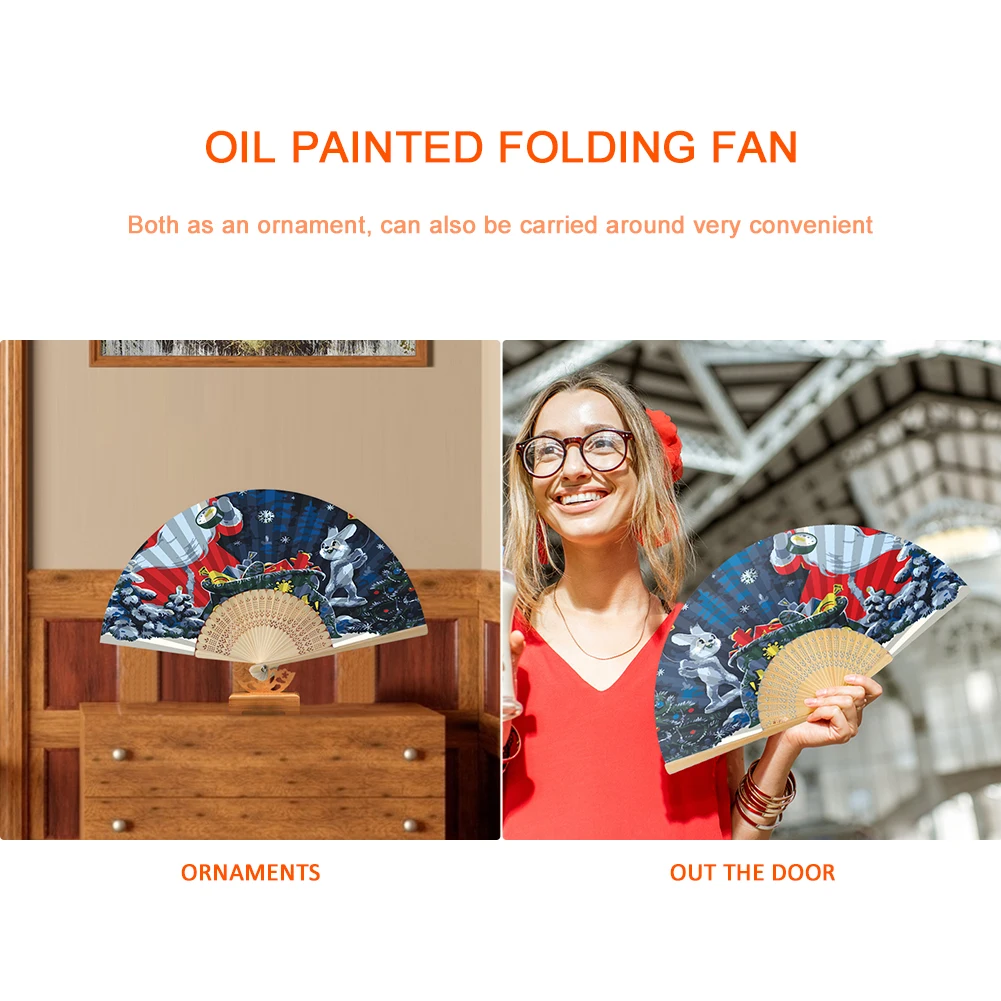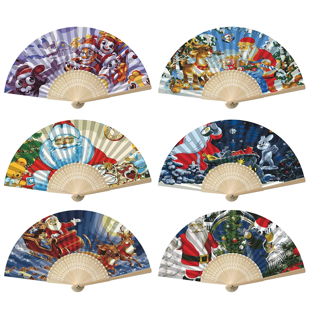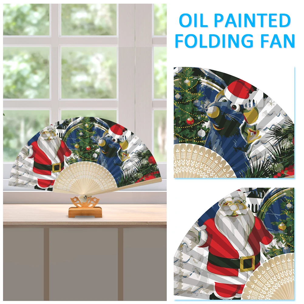 Раскраска маслом Санты, Складной вентилятор ручной работы, без рамки, для самостоятельной сборки, по номерам, Рождественский Декор, подарок, цифровой масляный вентилятор