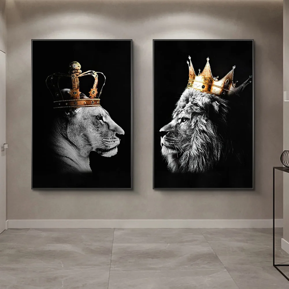 Черно-белый постер с изображением короля льва и королевы животных, картина на стену, художественные принты на холсте, скандинавский декор, настенные картины для комнаты