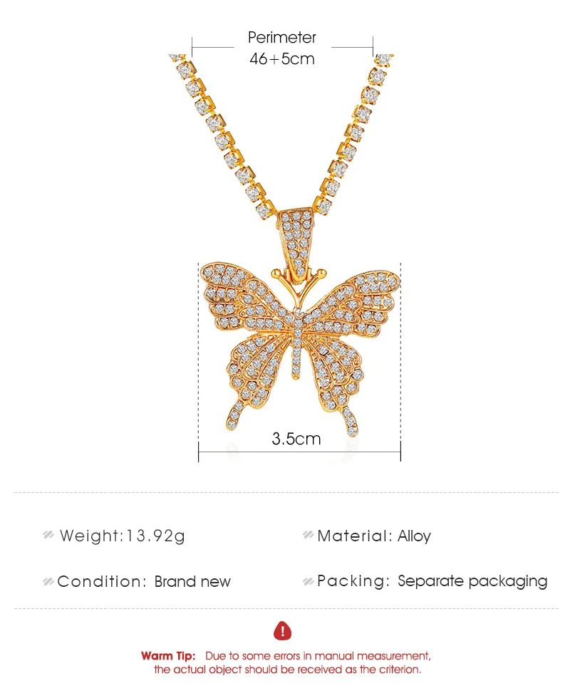 Кубинская Бабочка ожерелье стразы бабочка кулон ожерелье Хип-хоп ак...