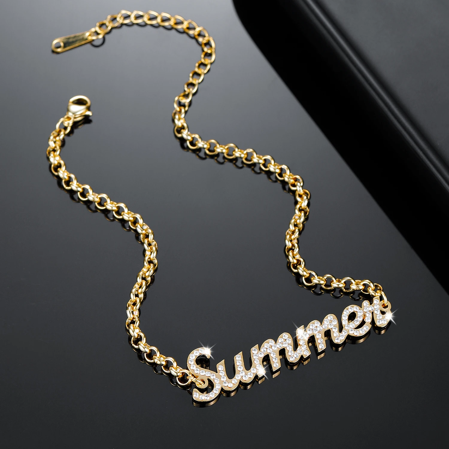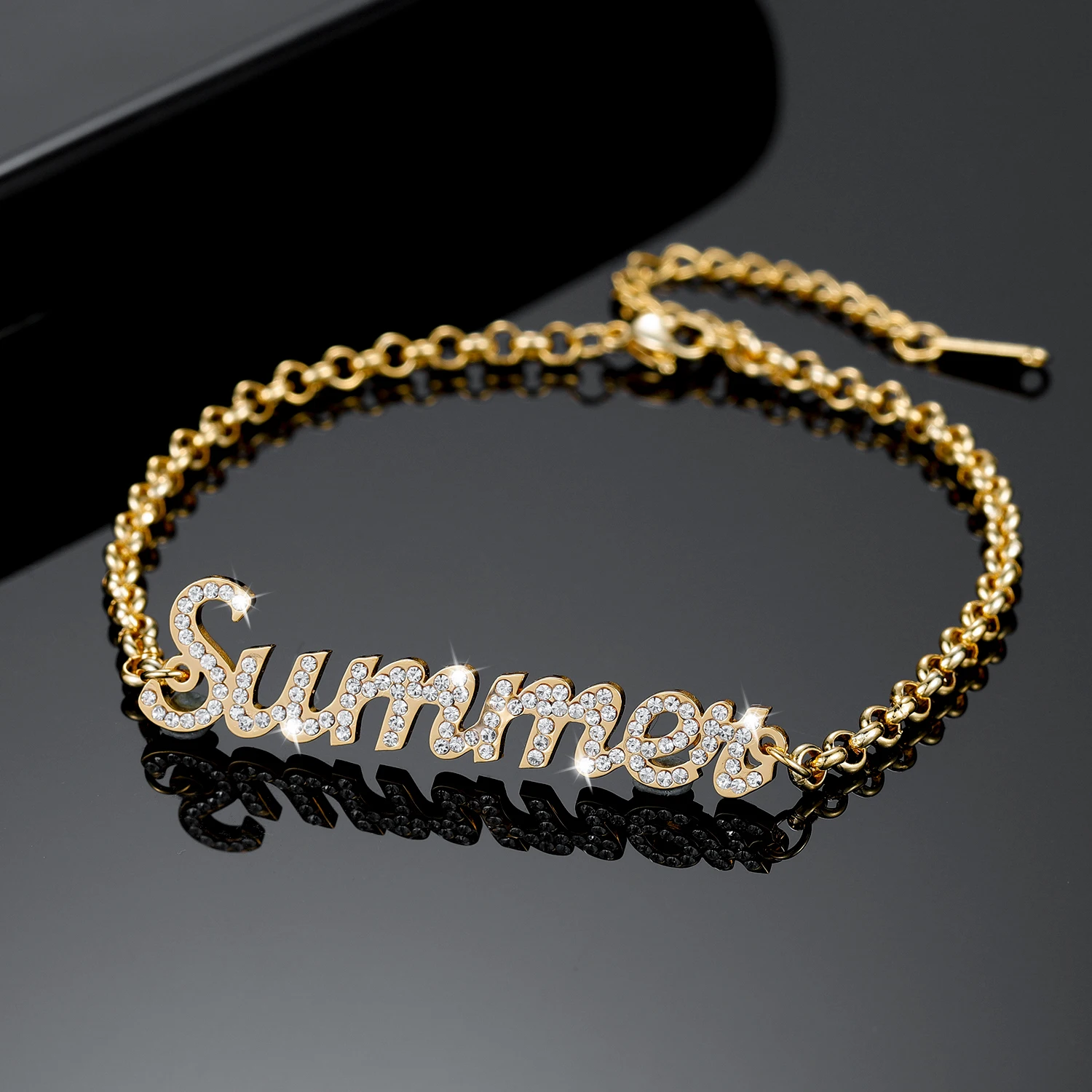 Браслет с именем, позолоченная цепочка из нержавеющей стали 18 кара...