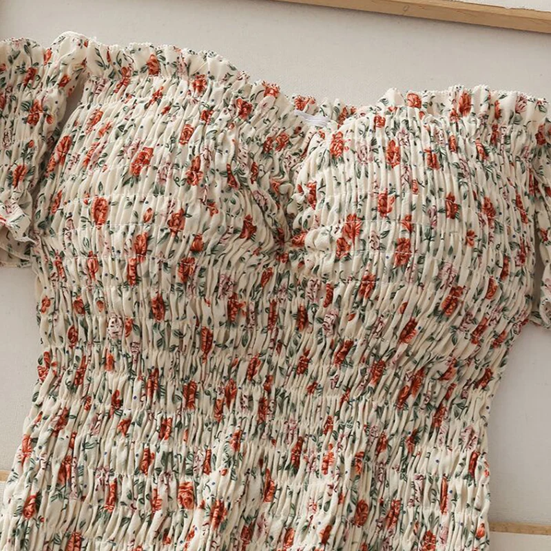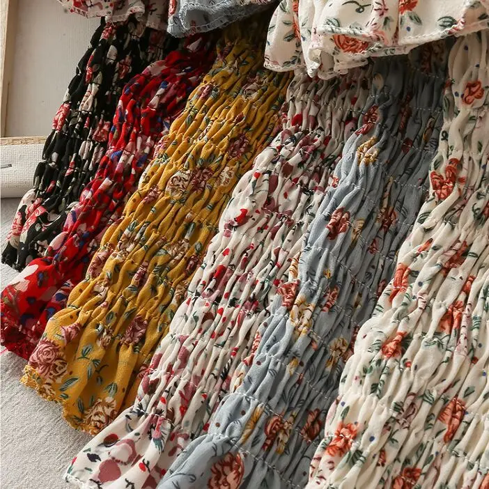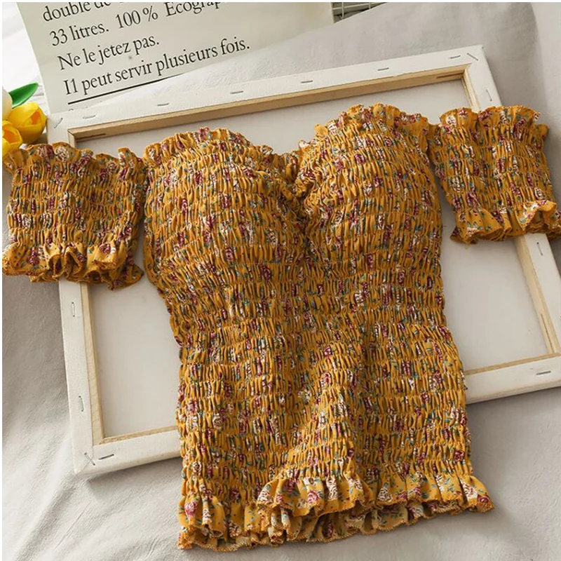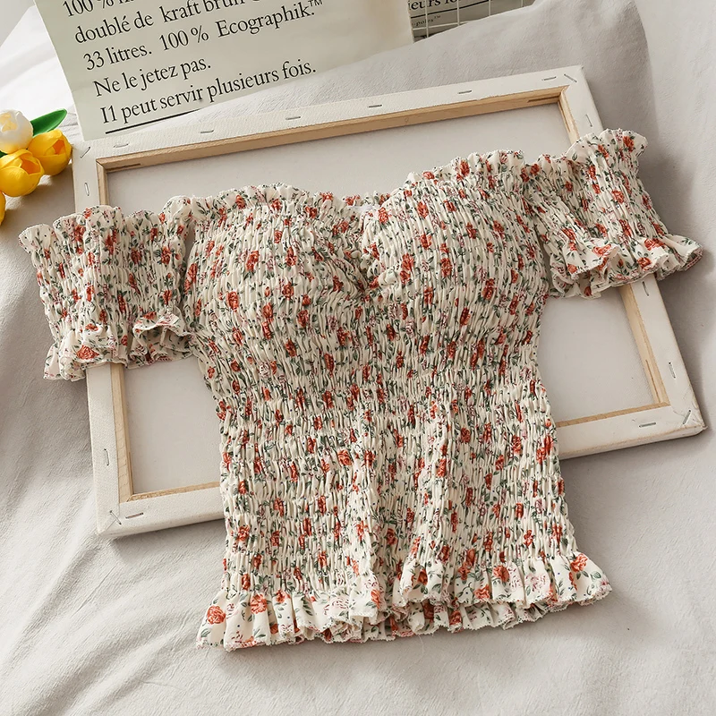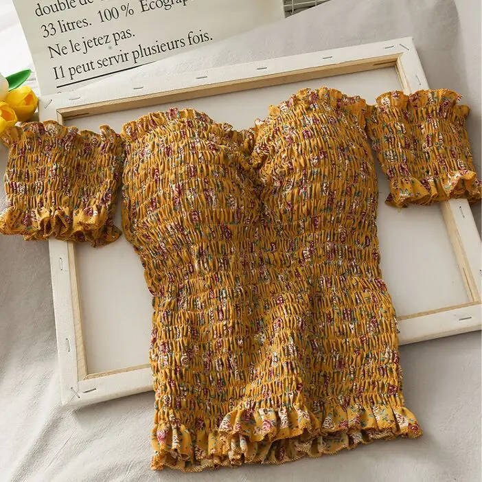 Блузка Женская эластичная с цветочным принтом, Милая Короткая рубашка с оборками, с вырезом лодочкой, с подкладками, 6 цветов, на лето