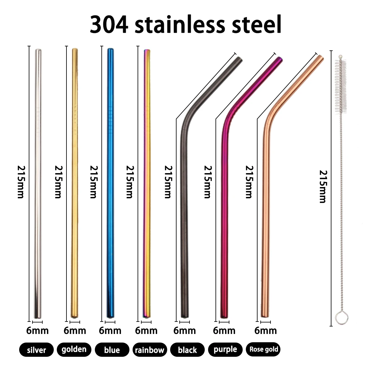2 шт., многоразовые металлические трубочки для напитков, из нержавеющей стали