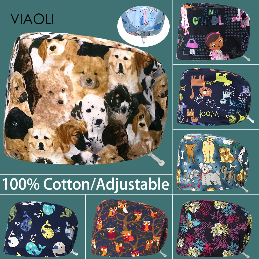 Регулируемая Шапочка с рисунком животных, зубная больница, Детская медицинская шапочка для ветеринарной клиники