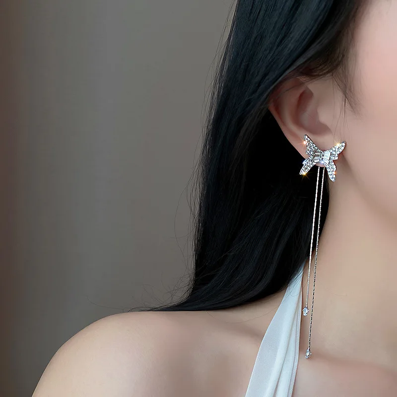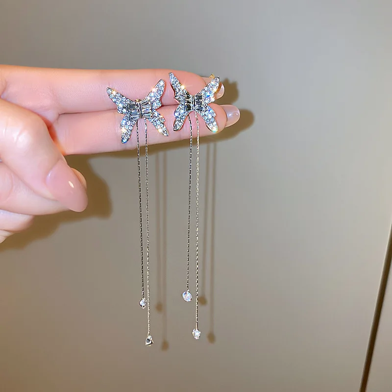 Женские длинные серьги-бабочки, из серебра 925 пробы, с кисточкой, ...