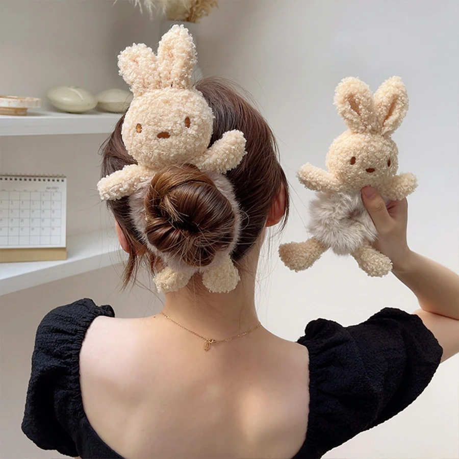 Детская милая плюшевая резинка для волос кролика, женские резинки для волос, эластичная резинка для волос в виде кролика, кота, тигра, заколка для конского хвоста, аксессуары для волос