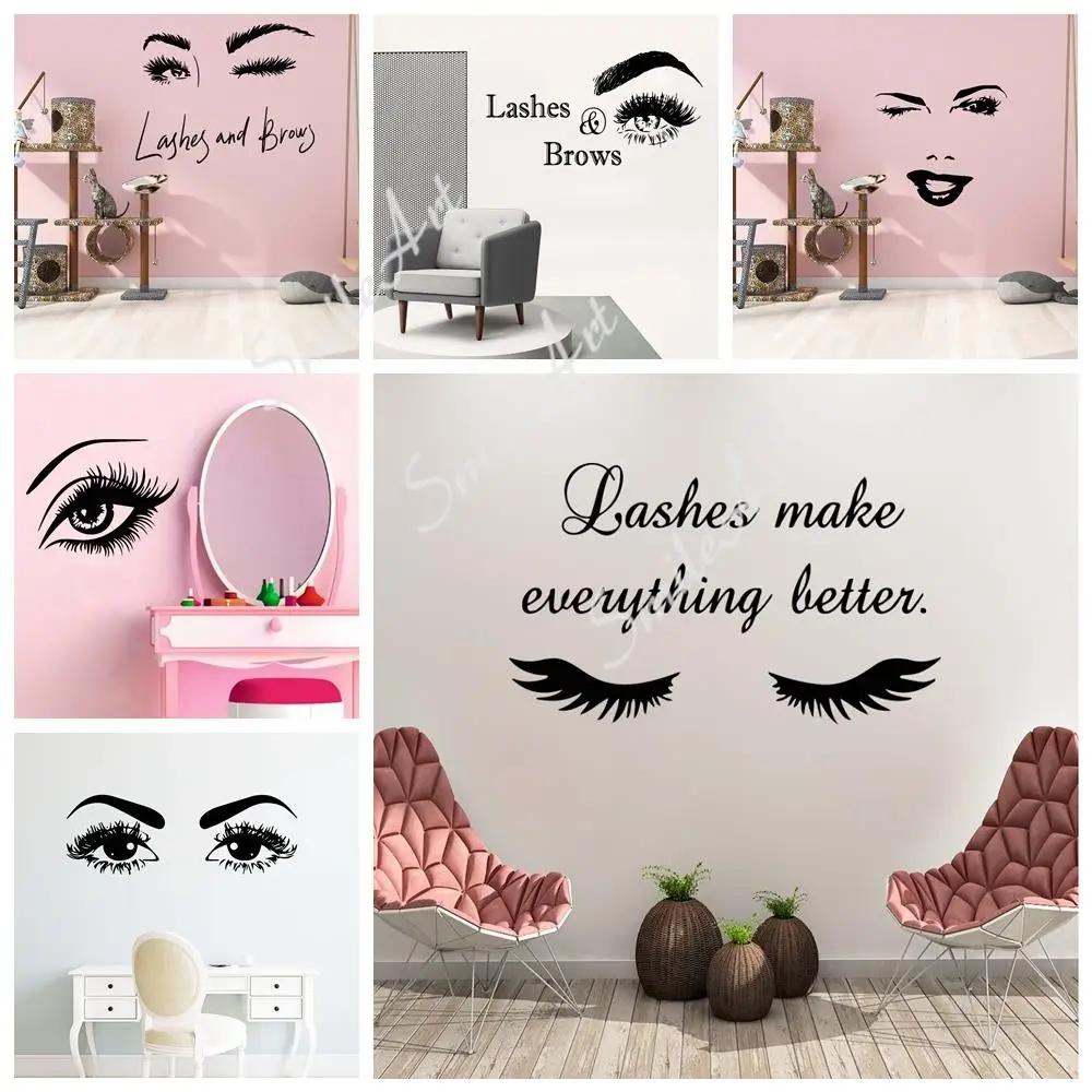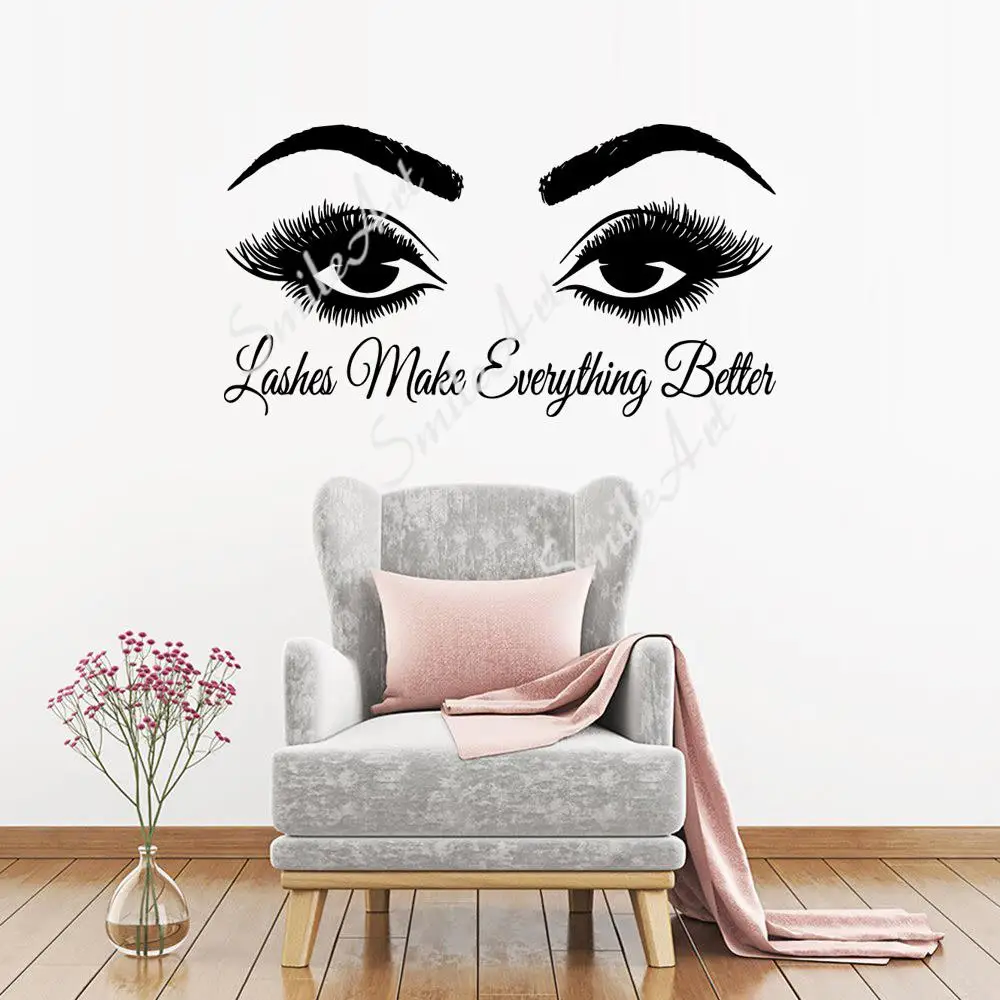 Бесплатная доставка, настенные Стикеры с ресницами, современная модная настенная наклейка, Декор, гостиная, спальня, съемная Настенная Наклейка
