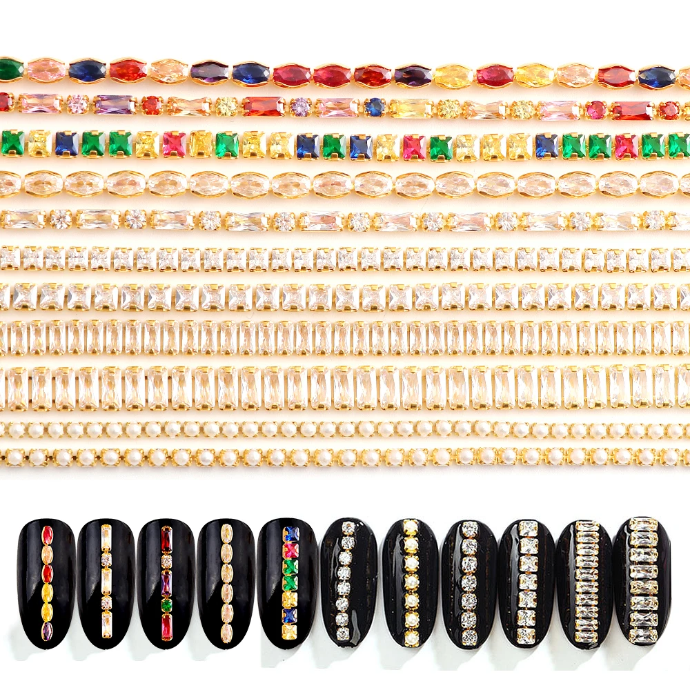Блестящая цветная цепочка из циркония для ногтей 9-10 см, жемчужная...
