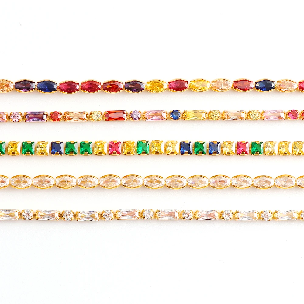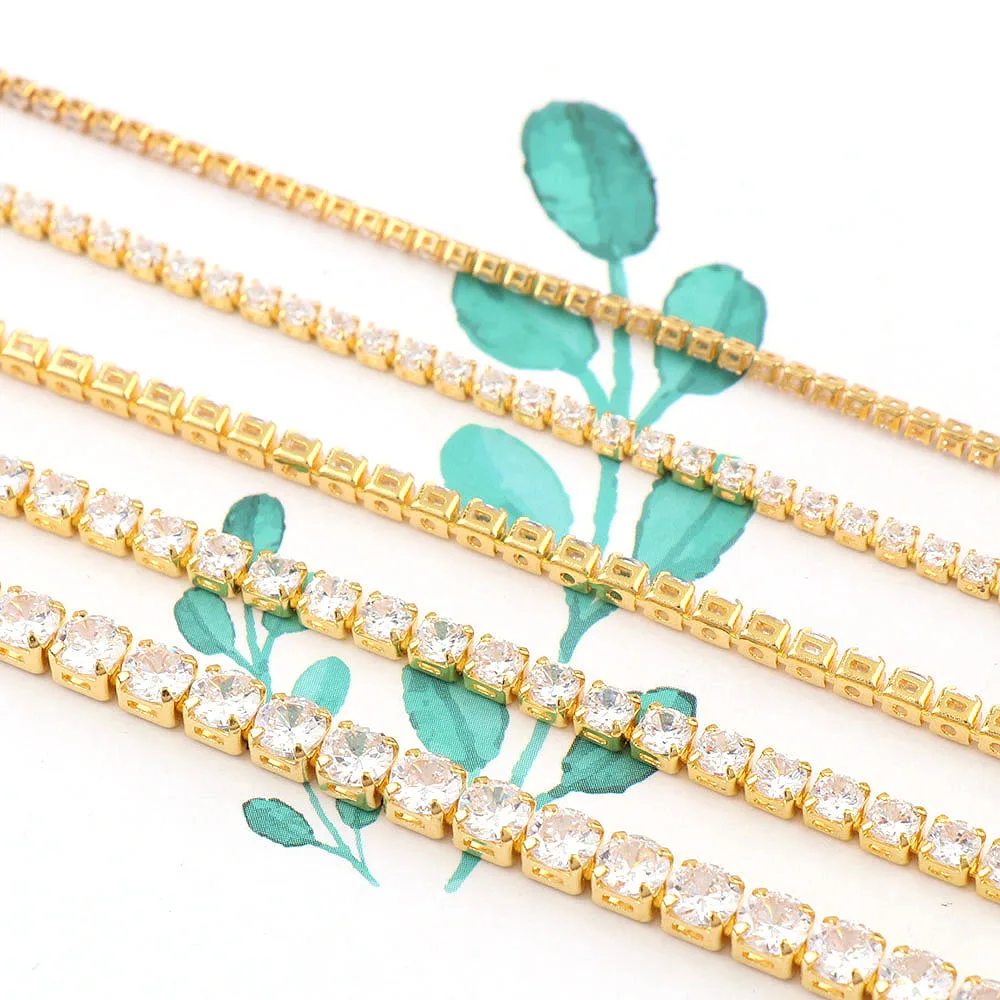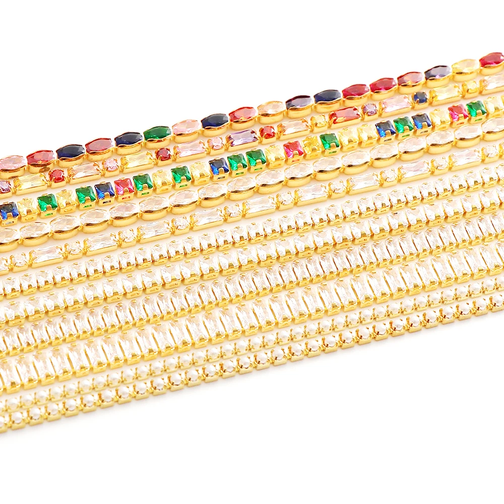 Цепочка для ногтей, с цирконом, с золотым основанием, 1 ярд