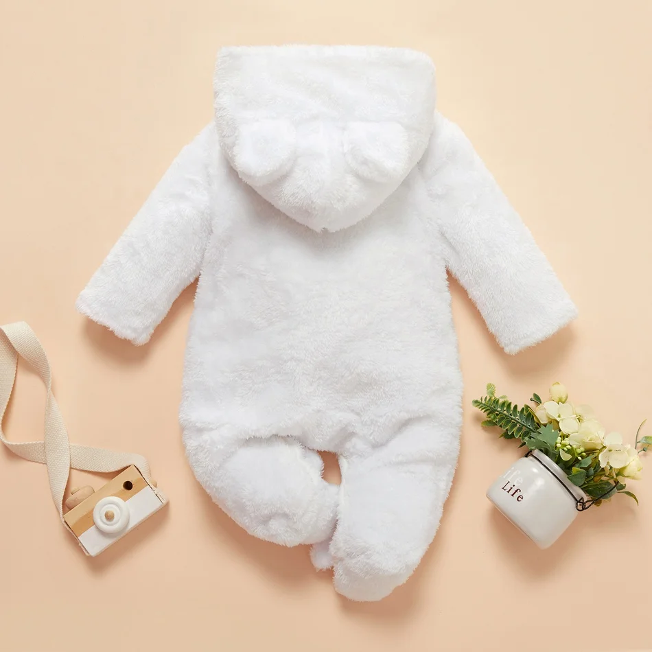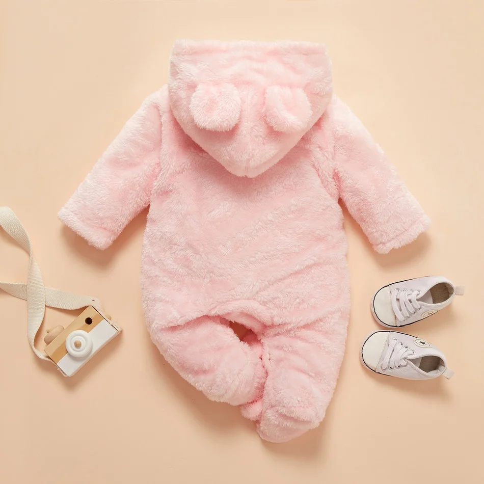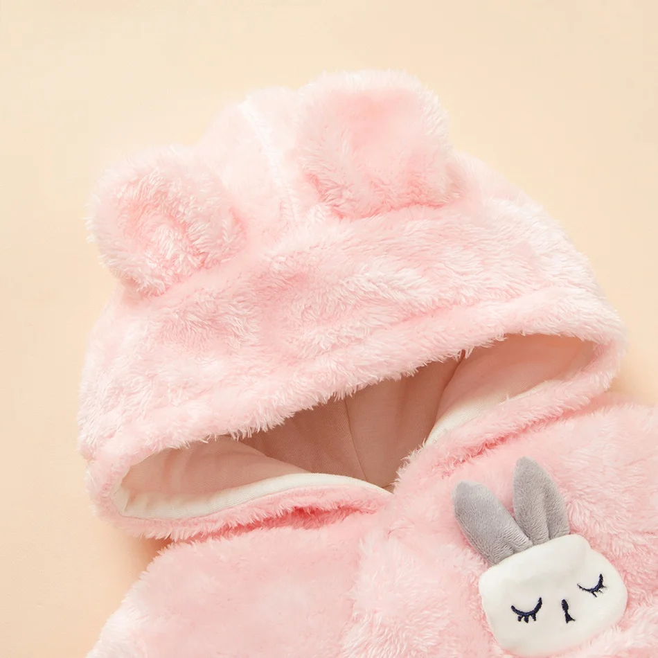 Новинка, зимние детские комбинезоны, Детские однотонные флисовые комбинезоны с капюшоном в виде кролика, милые детские комбинезоны унисекс
