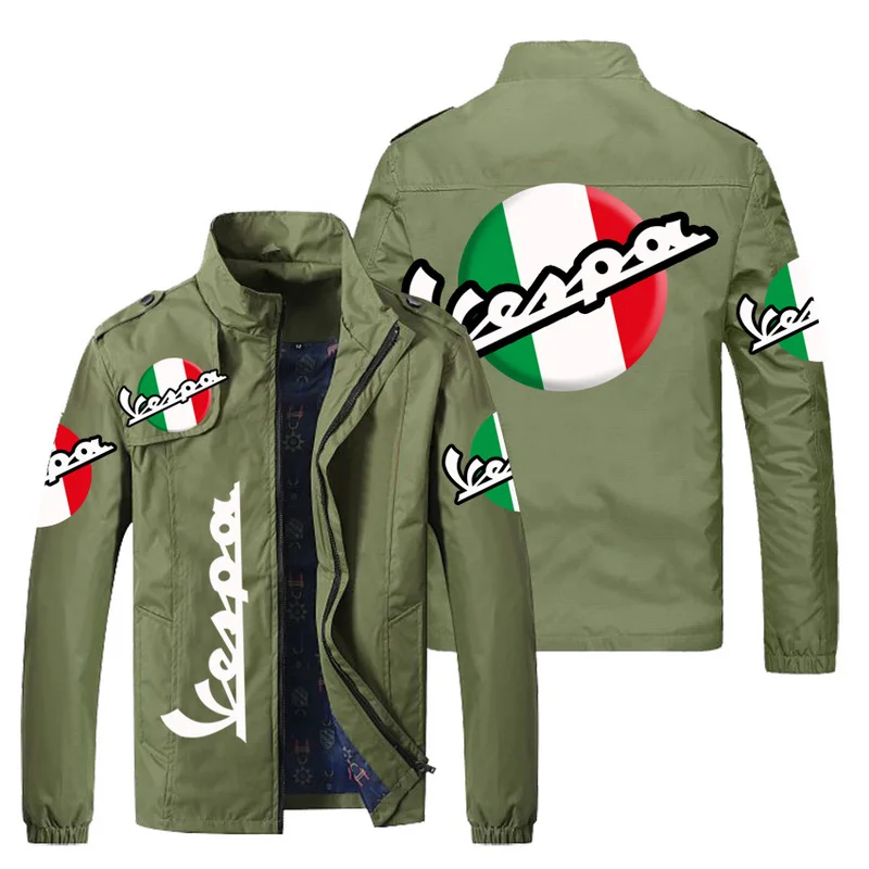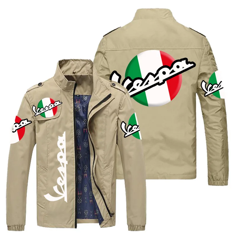 Новинка 2021, весенне-осенний мужской свитшот с логотипом Vespa, с воротником-стойкой, повседневный свитшот с длинным рукавом куртка-кардиган на молнии, 5 цветов