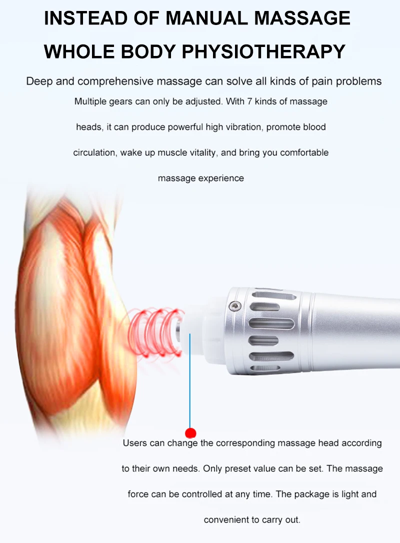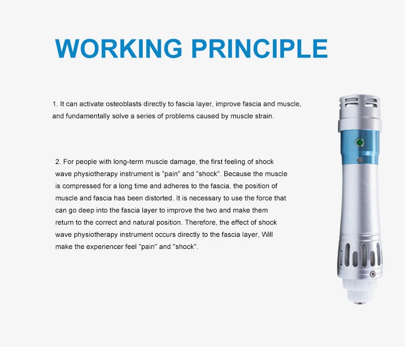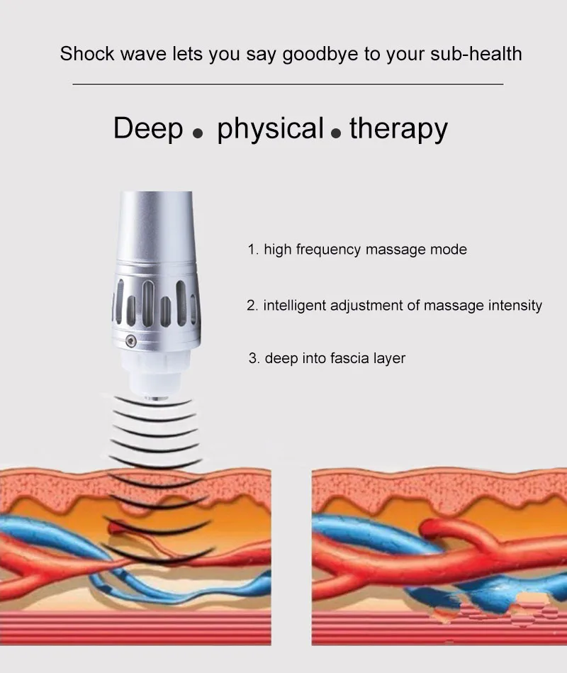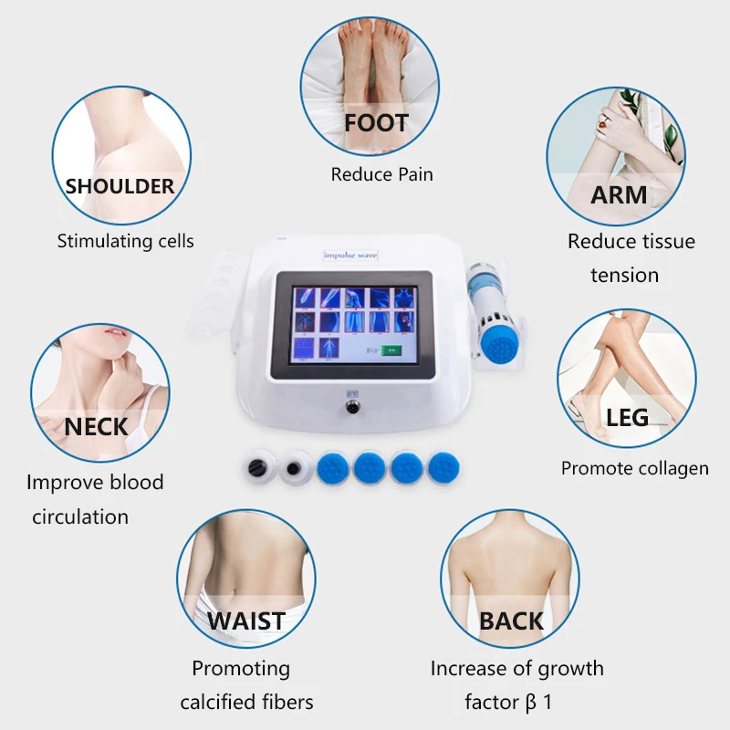 -Обезболивающая волнистая волна нацелена на пораженные участки, которые являются источником хронической боли. Влияние ударных волн вызывает растворение отложений кальция и приводит к лучшей васкуляризации. Эффект после-это облегчение от боли