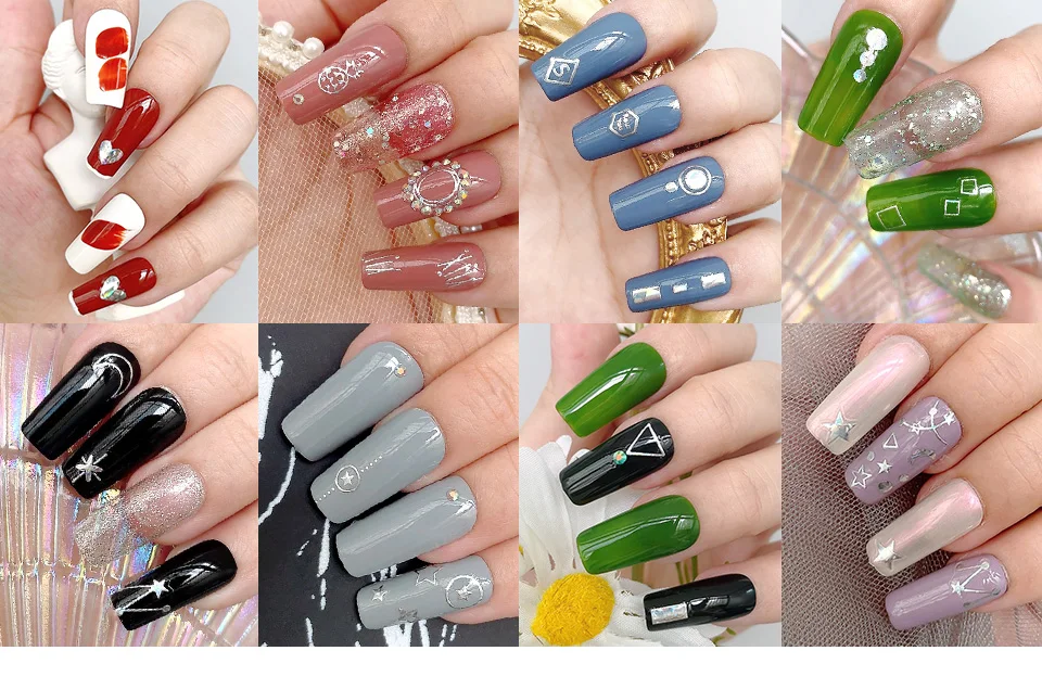 3D наклейки для ногтей, 1 шт., геометрические, четырехлистные, клеверные, созвездие, наклейки для ногтей, слайдер, лазерный, золотой, серебряный, для самостоятельного дизайна ногтей