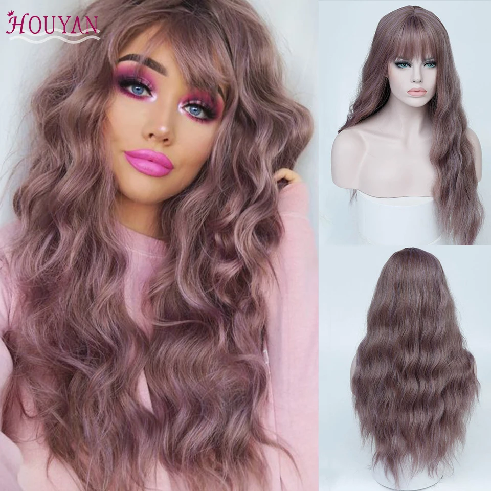 Женский волнистый парик HOUYAN, розовый парик из синтетического волокна, устойчивый к высоким температурам, для косплея, Лолита