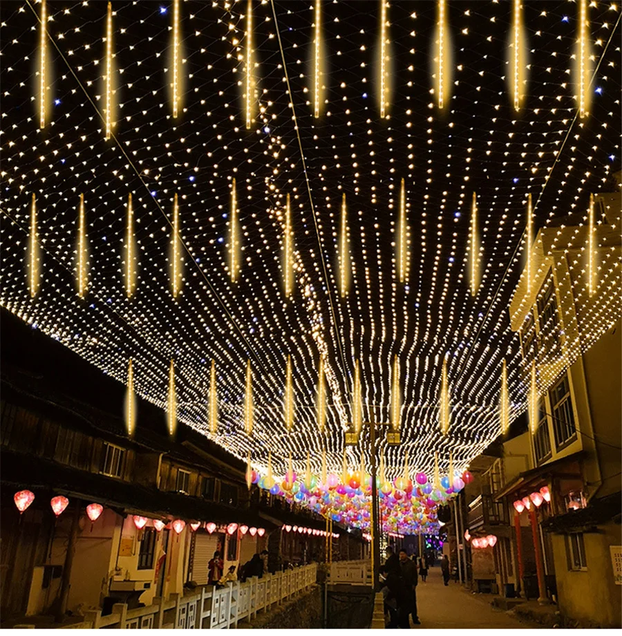 Водонепроницаемая Рождественская гирлянда, уличные гирлянды, 50 см, 8 трубок, гирлянда метеоритного душа, декоративная лампа для свадьбы, вечеринки, дома, сада