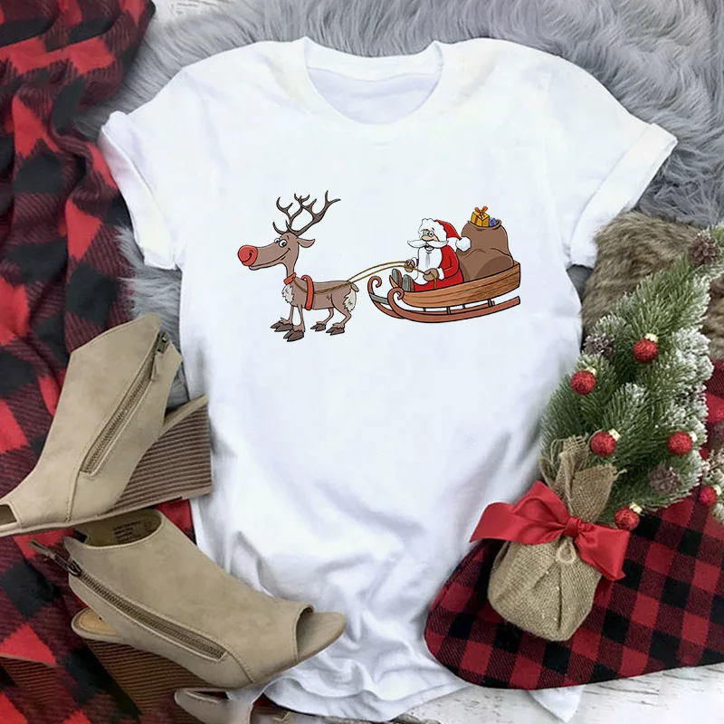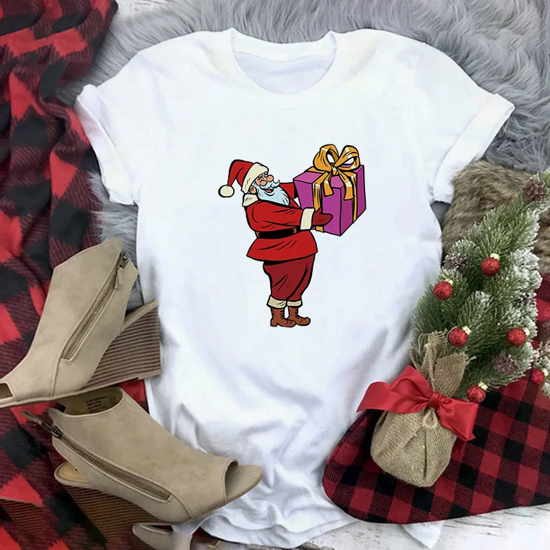 Лидер продаж, женская футболка с рождественским принтом, белая женская модная футболка с графическим принтом, женская одежда в стиле Харадзюку с коротким рукавом