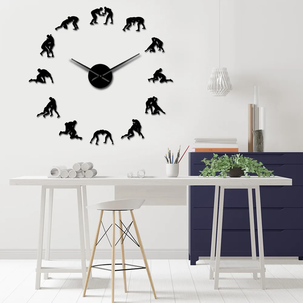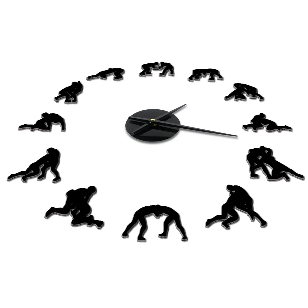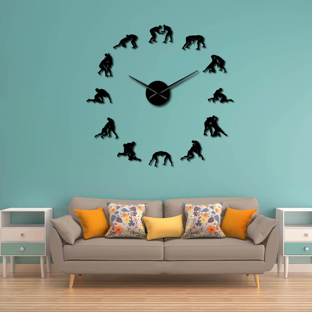 Борцовские гигантские настенные часы, современный дизайн, для самостоятельной сборки, борец, домашний декор, греко-римские силуэт, художественные спортивные часы, Тихая развертка, большие часы