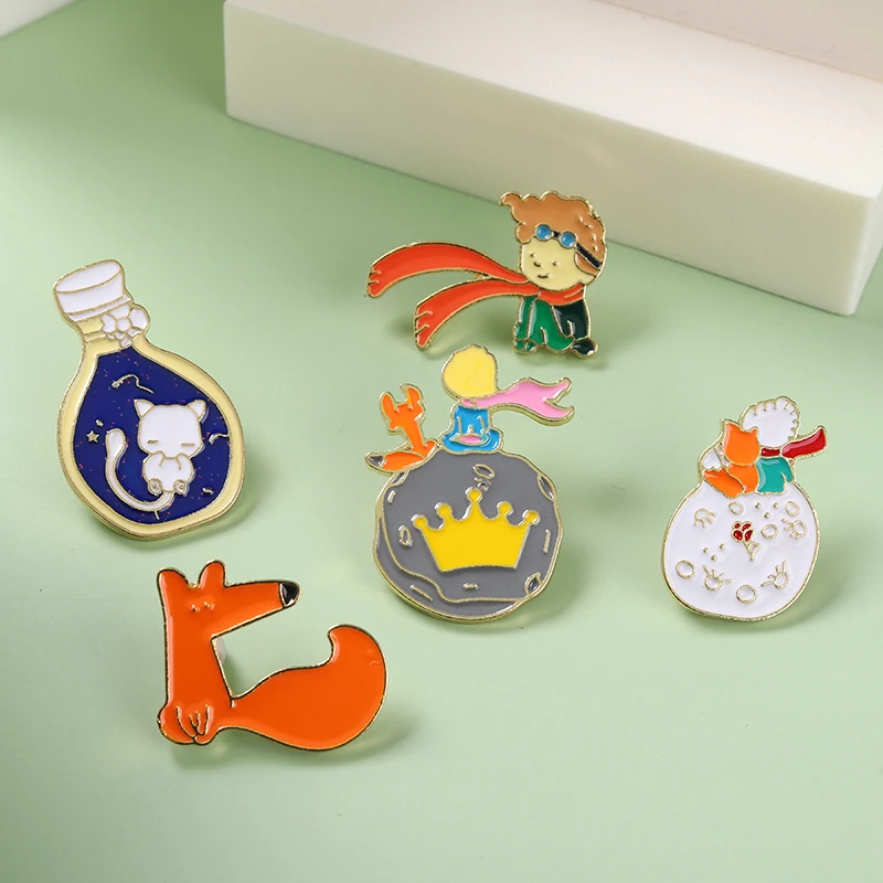 Эмалированные булавки с принцем лисы и розой, модель B612, значок на лацкан для шляпы, Классическая сказочная бижутерия, подарок для детей