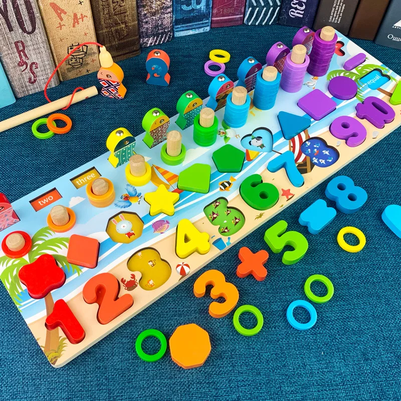 Монтессори Развивающие деревянные игрушки детские математические рыболовные цветные формы занятая доска Деревянные Монтессори обучающие игрушки для детей Подарки