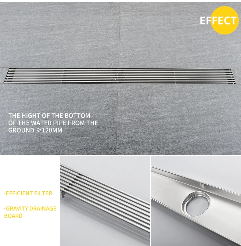 Дренаж длинный из нержавеющей стали для ванной комнаты, душевой комнаты, вставка для плитки, слив для пола, анти-запах, дренаж для ванной комнаты, Ловец волос
