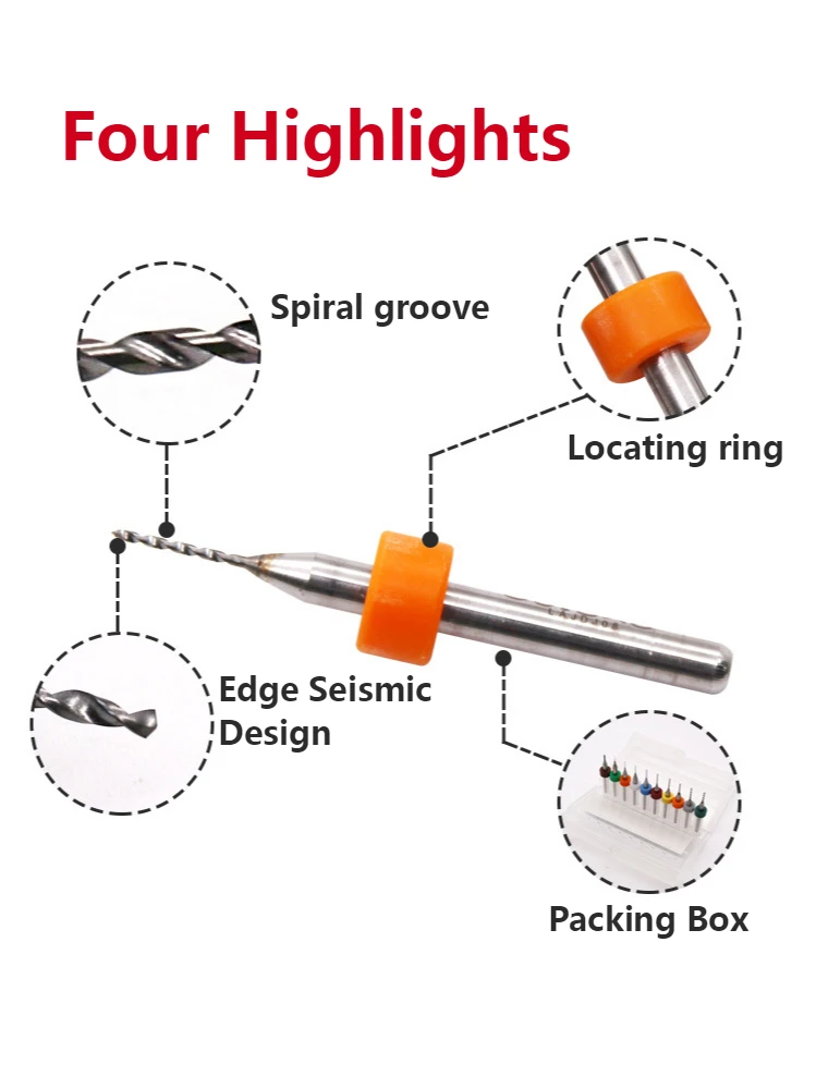 Набор мини-сверл для печатной платы, карбид вольфрамовой стали, 10 ...