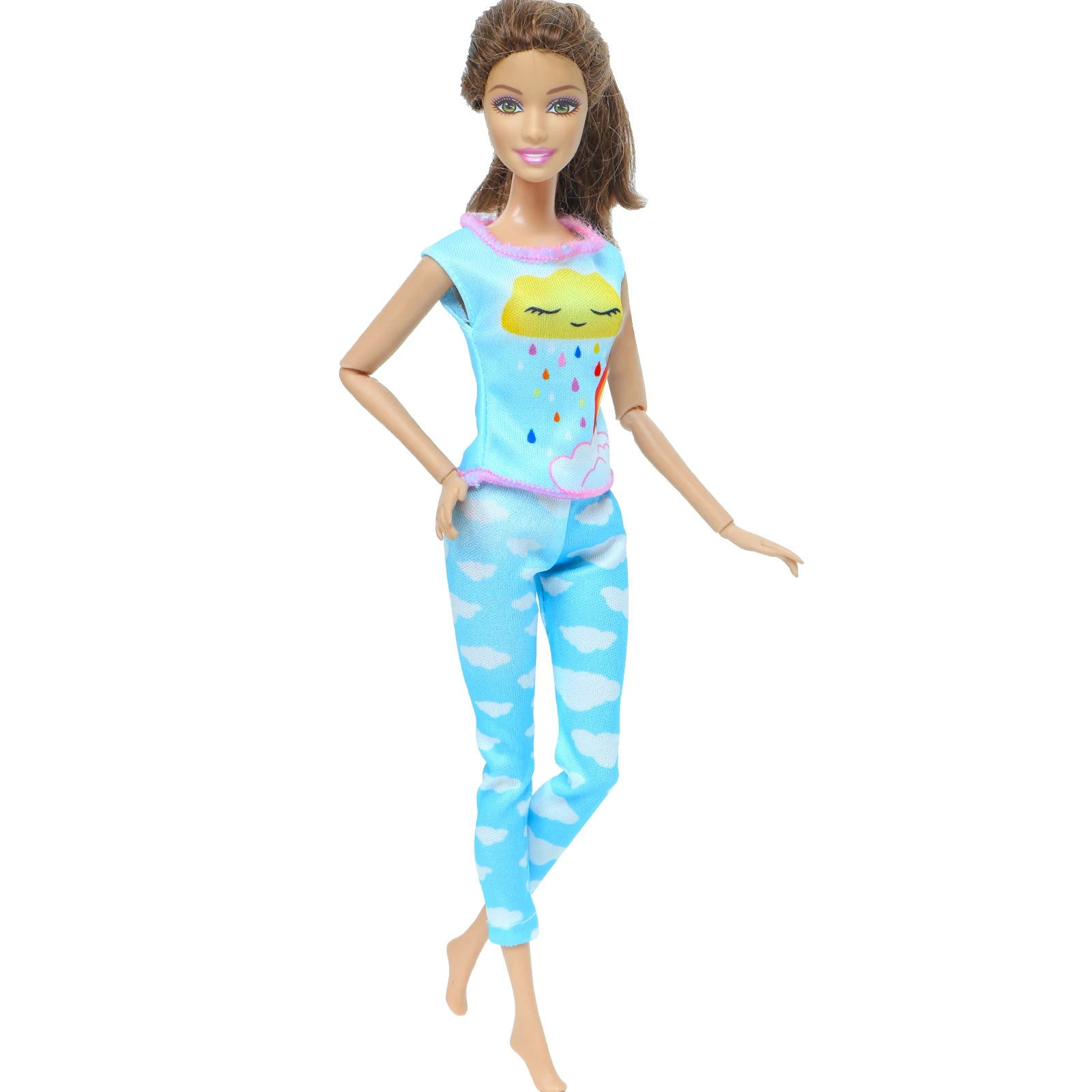 1 комплект кукольный наряд ручной работы, радужная футболка с солнцем, брюки с облаком, повседневная одежда для девочек, одежда для Барби, строительный подарок