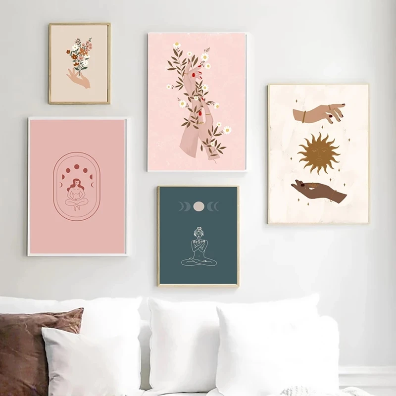 Абстрактные Мистик руки солнце Бохо постеры печать йога девушка Холст Живопись Печать Средний век настенное искусство картины гостиная домашний декор