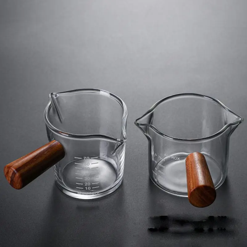Термостойкая стеклянная чашка для молока с деревянной ручкой, 7075 мл