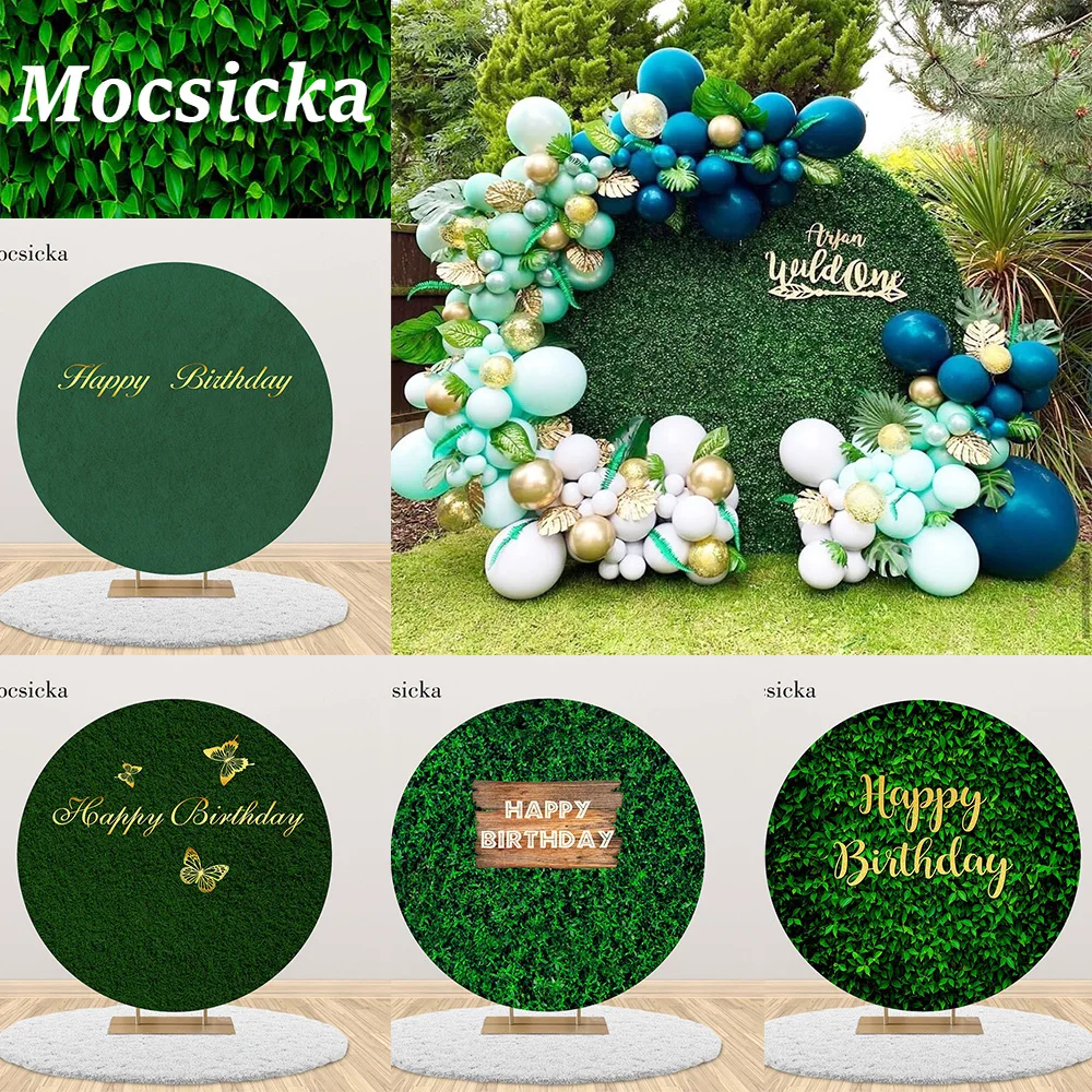 Фон Mocsicka для фотосъемки с изображением круга зеленых листьев травы стены дня рождения Декорации для детских крестин