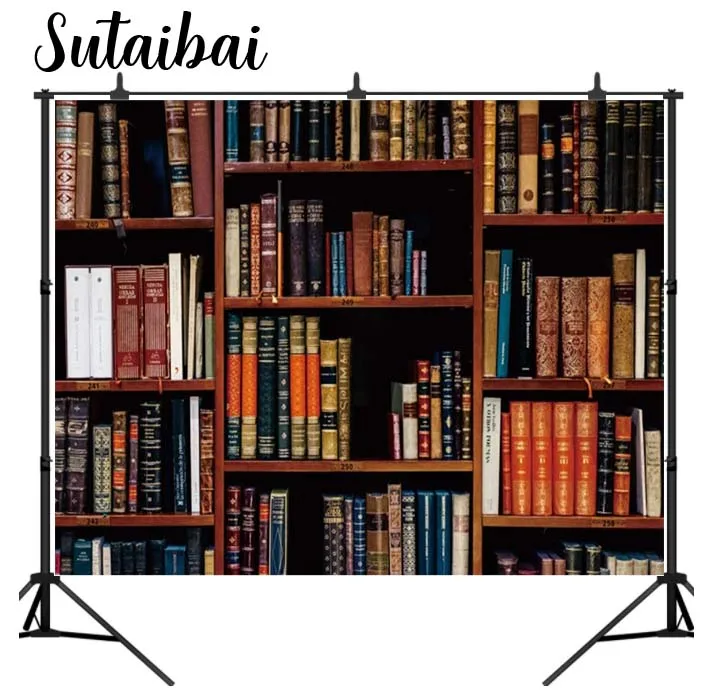 Фон для фотосъемки с изображением старинного книжного шкафа в ретро-стиле