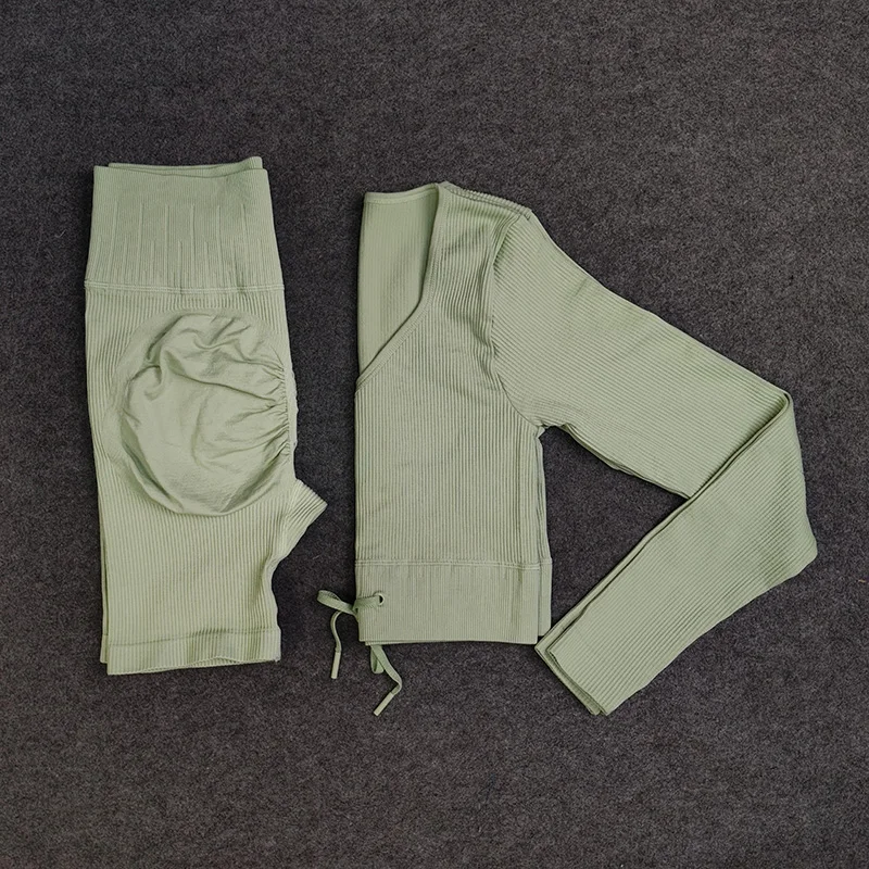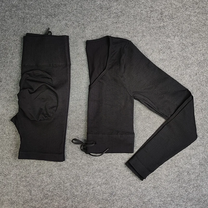 Бесшовный комплект для йоги, Женский комплект из двух предметов, короткий топ с длинным рукавом и шорты, спортивный костюм, тренировочный костюм, женский спортивный костюм для фитнеса, одежда для спортзала