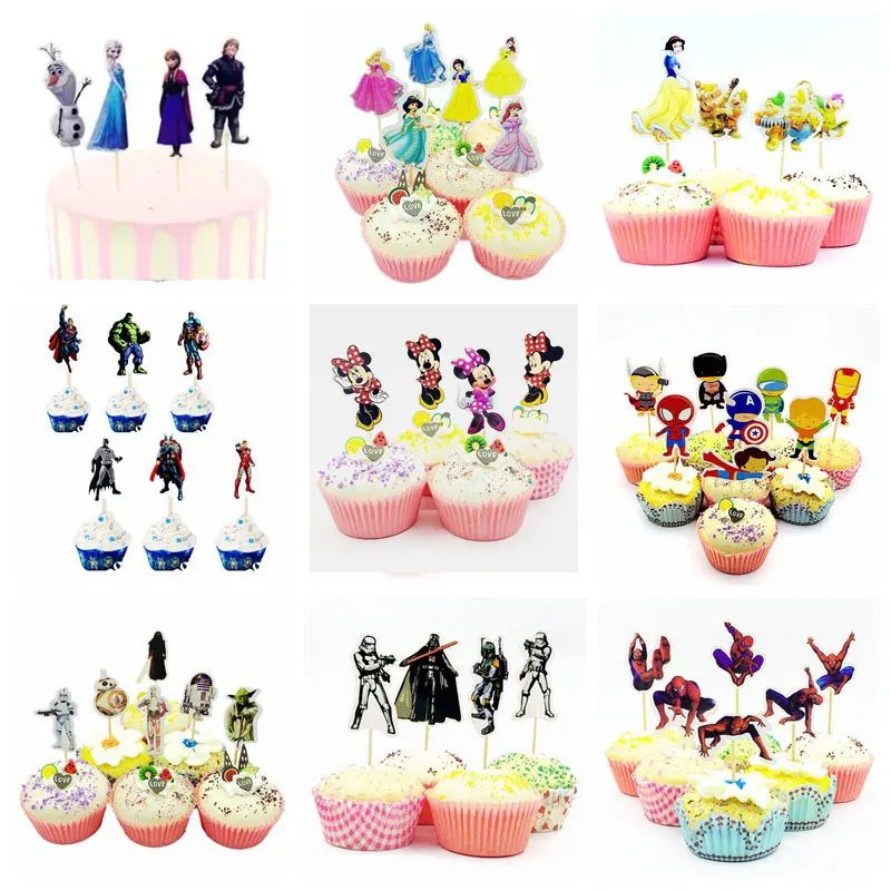 24 шт.лот Замороженные Marvel Человек-паук капкейки топперы Замороженные 2 Эльза Анна Олаф День рождения украшение день рождения торт ПОСТАВКИ ИГРУШЕК