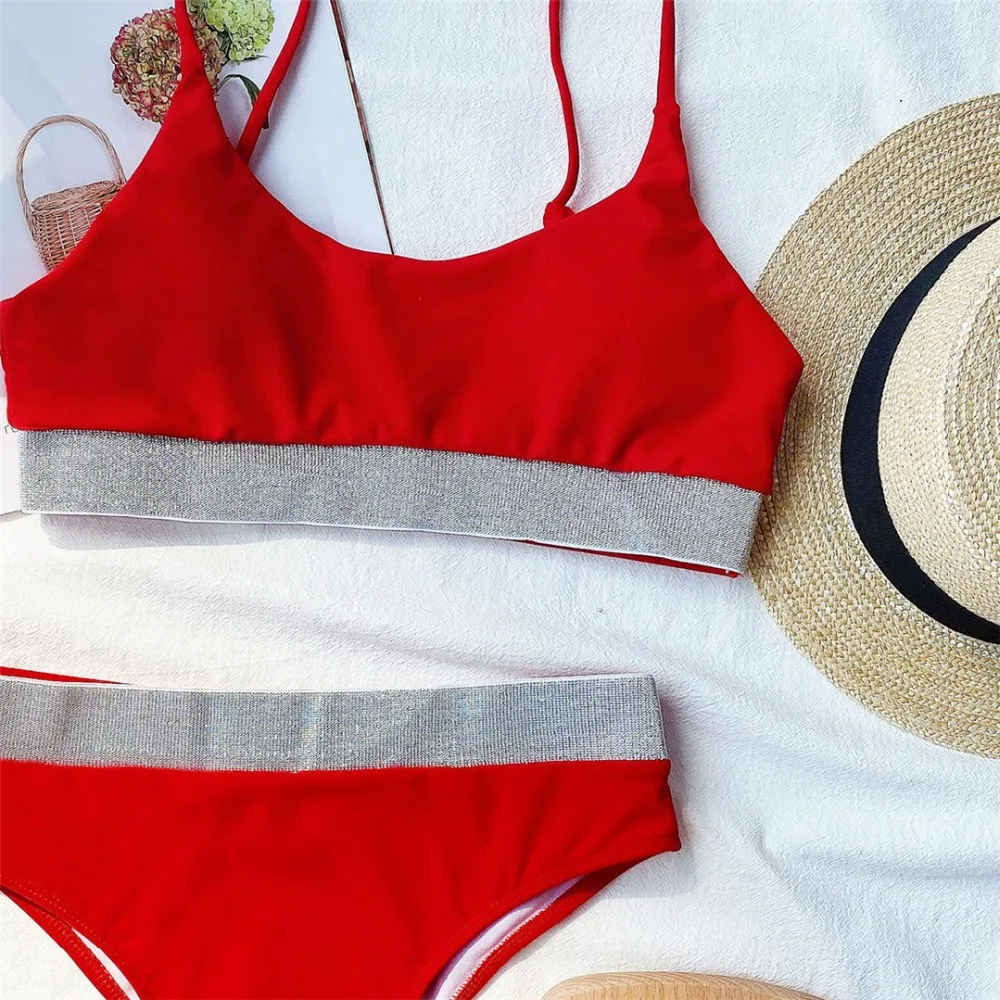 2021 сексуальное блестящее бикини в стиле пэчворк с высокой талией, женский купальный костюм, женская одежда для плавания, комплект бикини из двух предметов, Спортивный Купальный костюм для плавания