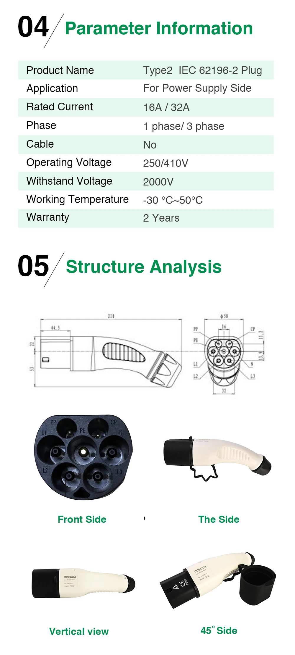 Штепсельная вилка переменного тока для блока питанияВ цену не входит кабель. Если вам нужен кабель, пожалуйста, свяжитесь с нами и сообщите нам длину провода.Пожалуйста, обратите внимание: Эта вилка предназначена для источника питания, а не для EV.Штепсельная Вилка европейского стандарта IEC62196