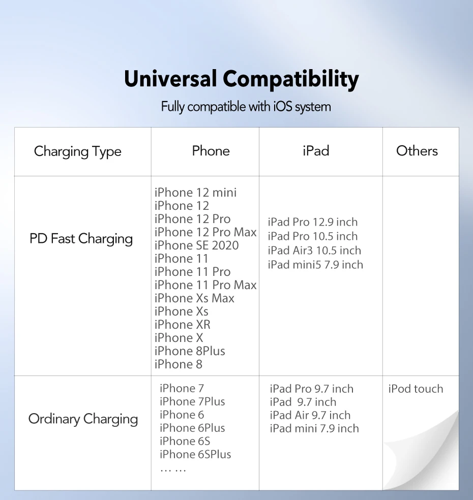 product name 1USB C to Lightning cable PD30W 20W 18W