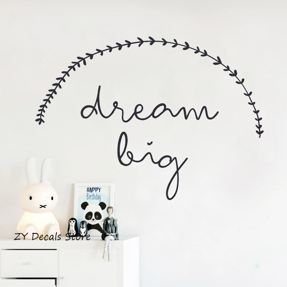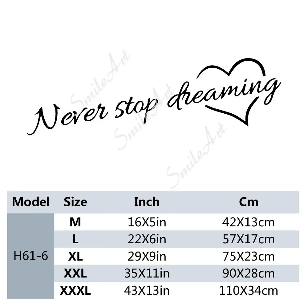 Бесплатная доставка, никогда не прекращайте мечтать, ПВХ настенные наклейки, домашний декор для детской комнаты, украшение, роспись на заказ