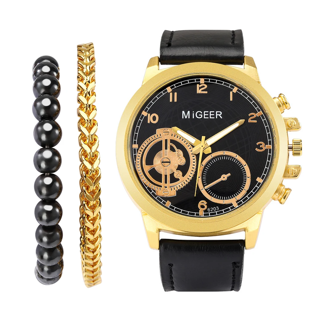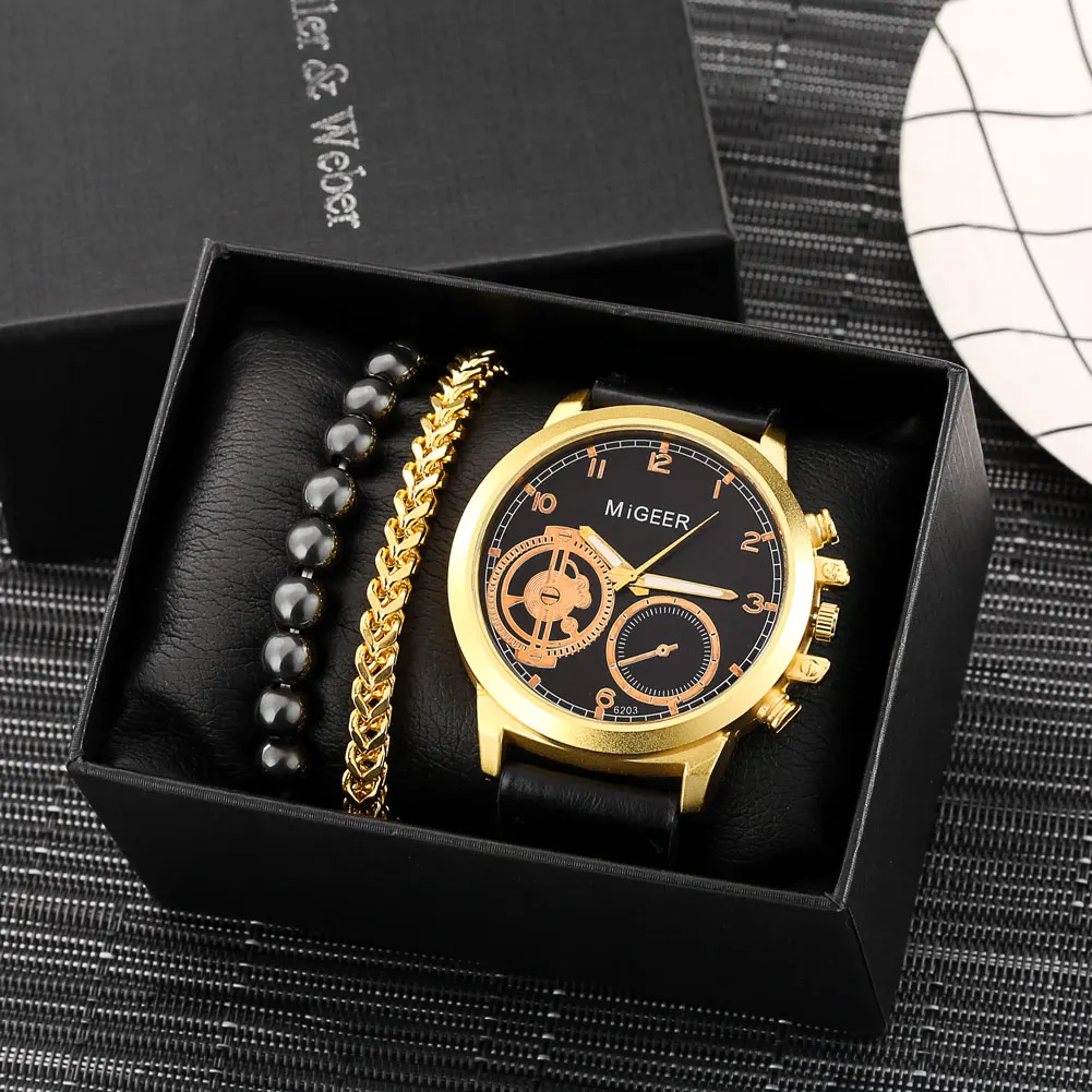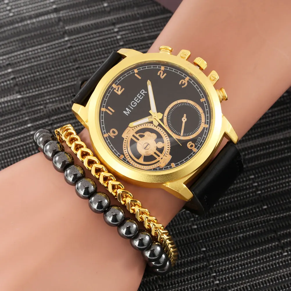 Набор модных мужских часов и браслетов, мужской черный выпуск из 3 ...