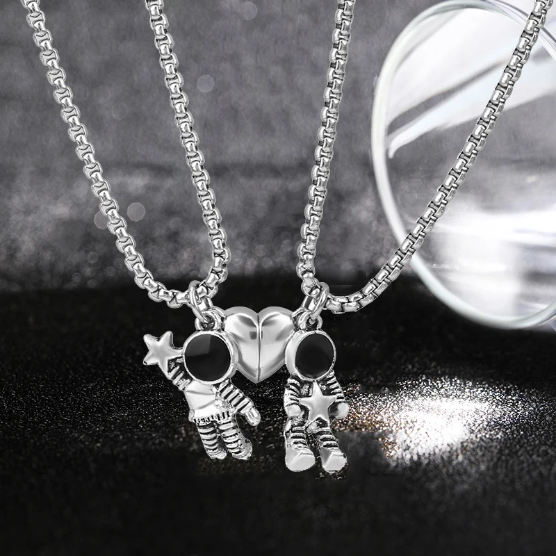 Магнитные Подвески Spaceman в форме сердца, ожерелье для влюбленных...